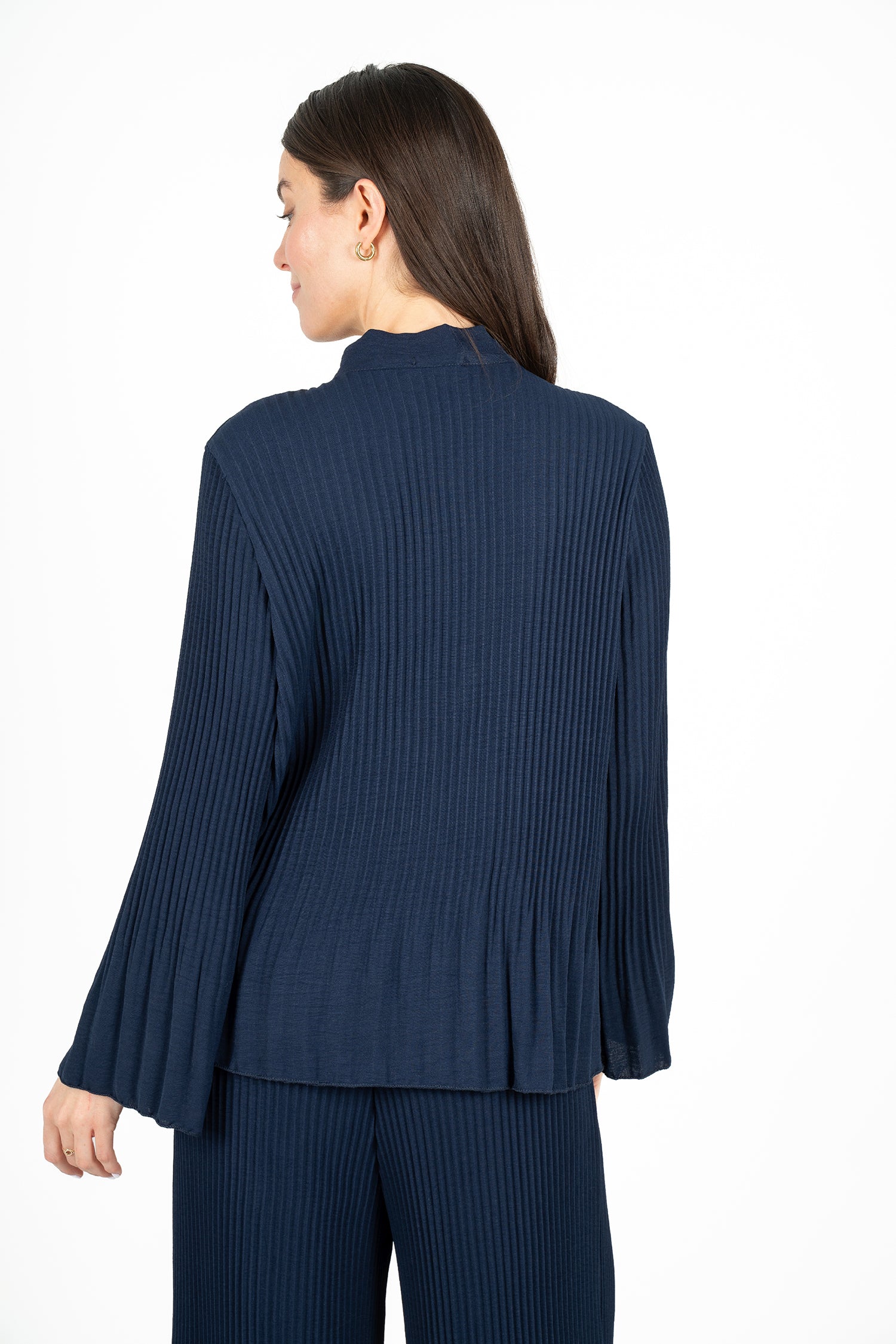 Women's woven long sleeve top, with mocc-neckline, a self-tie bow detail at collar, a bell-shaped hemline and pleated detailing. Composition: 100% Polyester.
