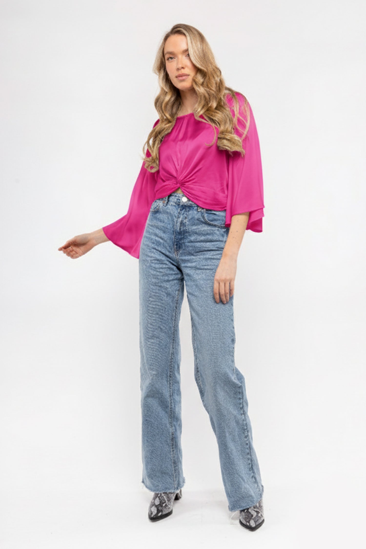 Long Sleeve Top. Fabric: 100% Viscose. Available in colors: Black, Shocking Pink, Snow.