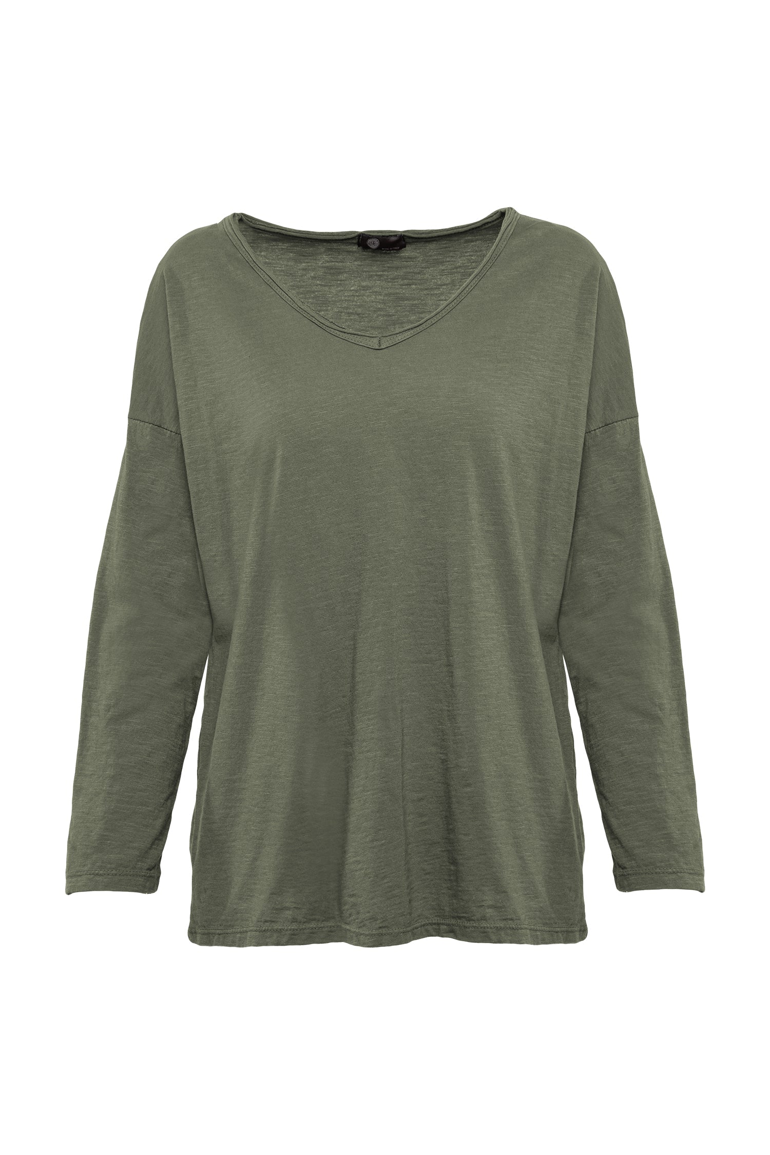 Women’s Knit Long Sleeve Top. Composition: 95% Cotton and 5% Spandex. Available in colors: Md Grey, Mustard, Navy, and Olive
