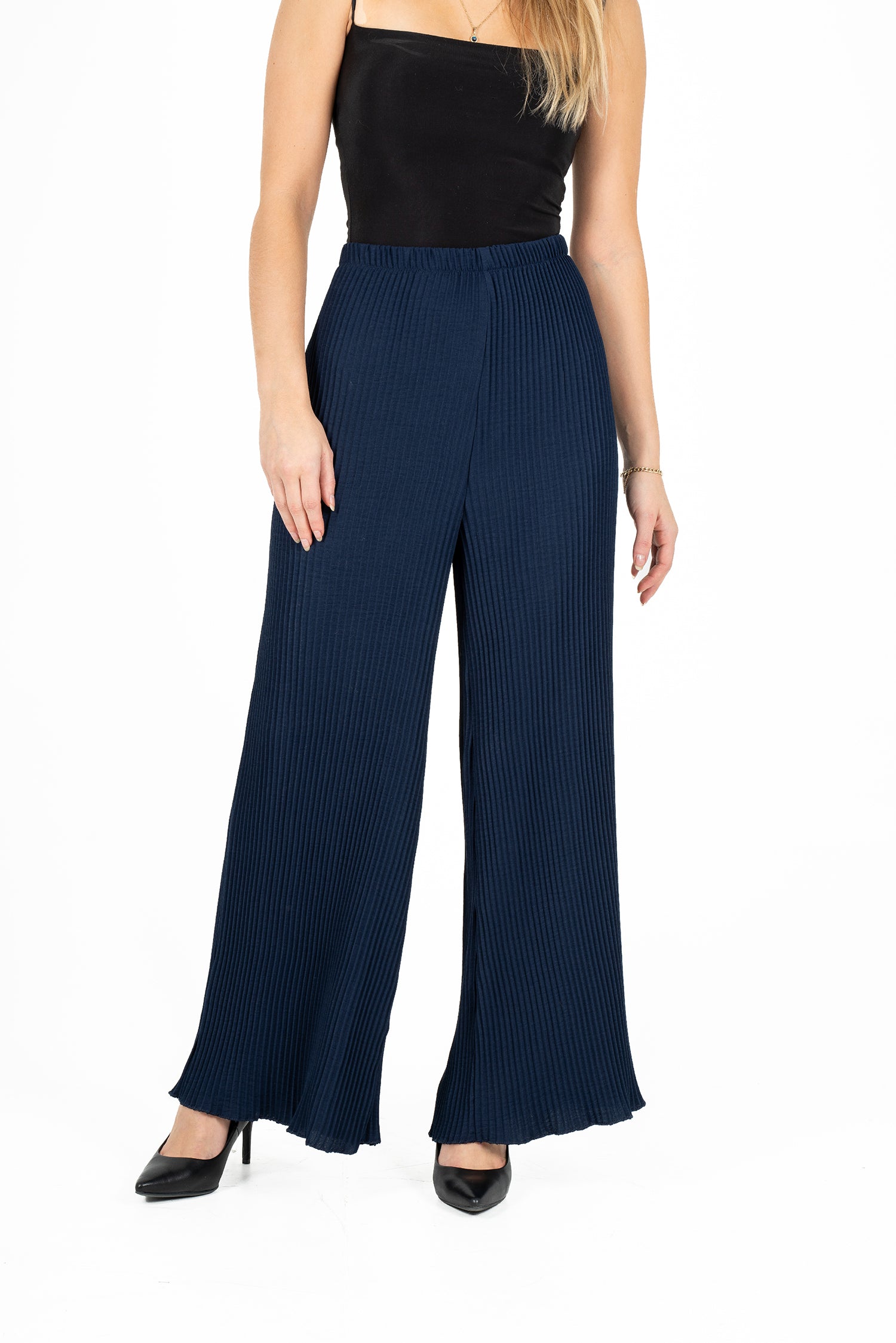 Women's woven pull on wide leg pants with pleated detailing. Composition: 100% Polyester.