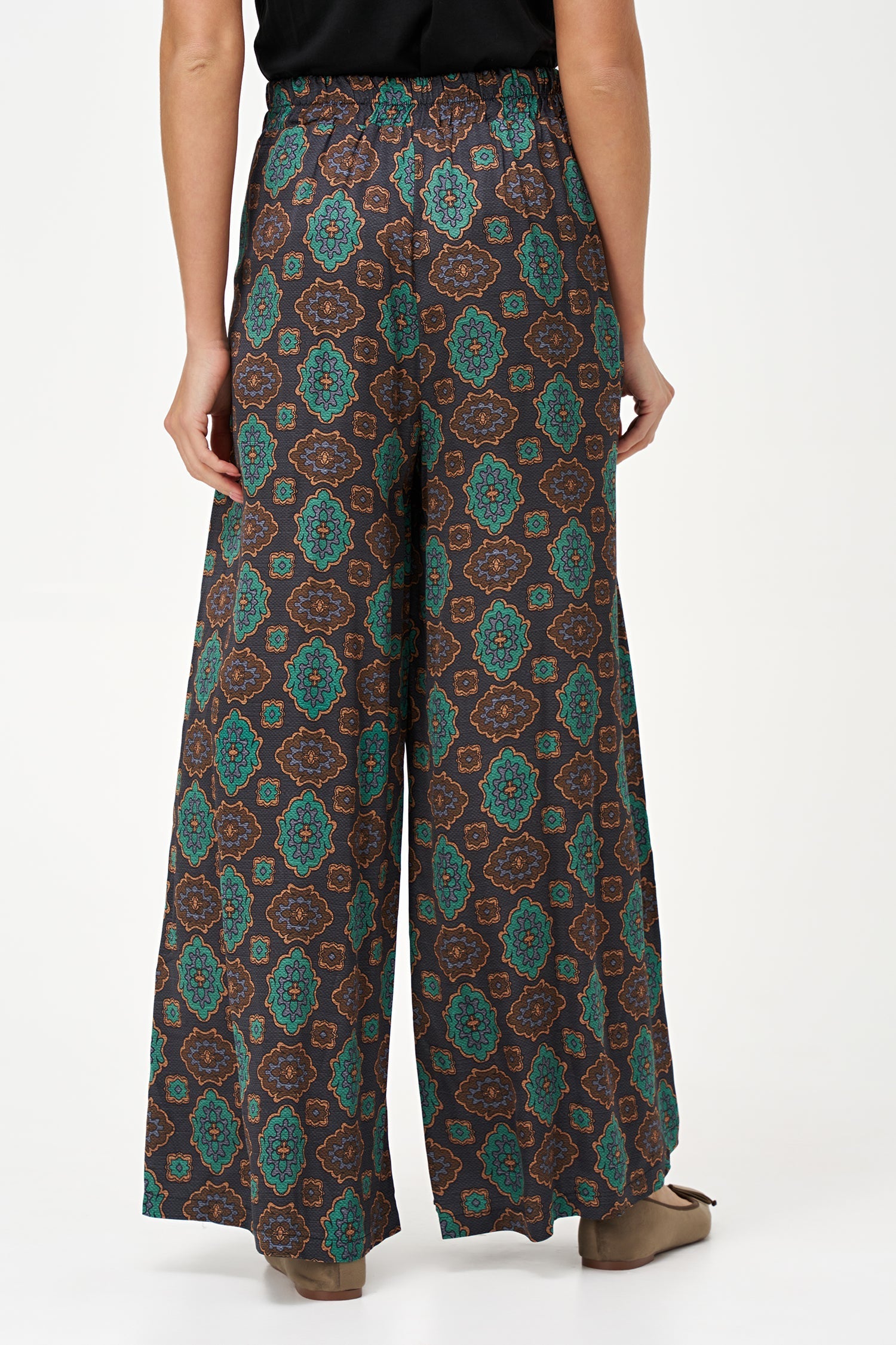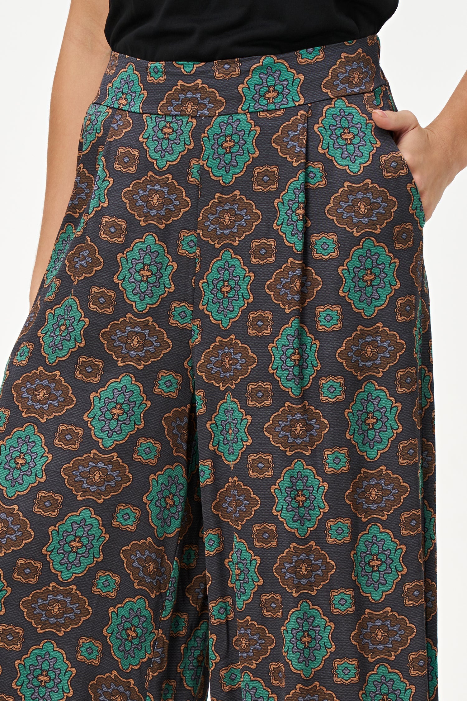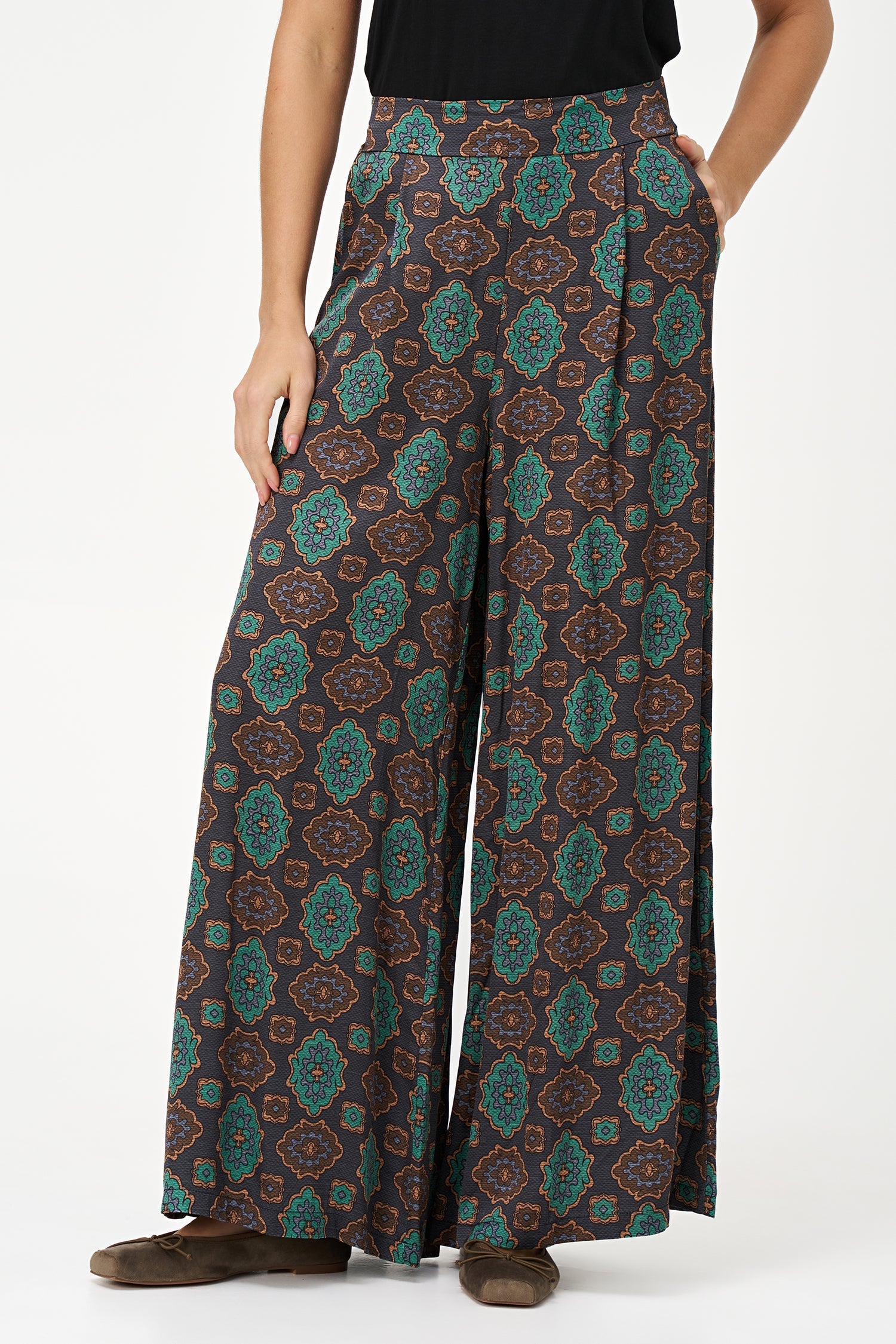 Women's Woven Printed Pull-On Wide Leg Pants With Slash Pockets. Made of 100% Viscose.