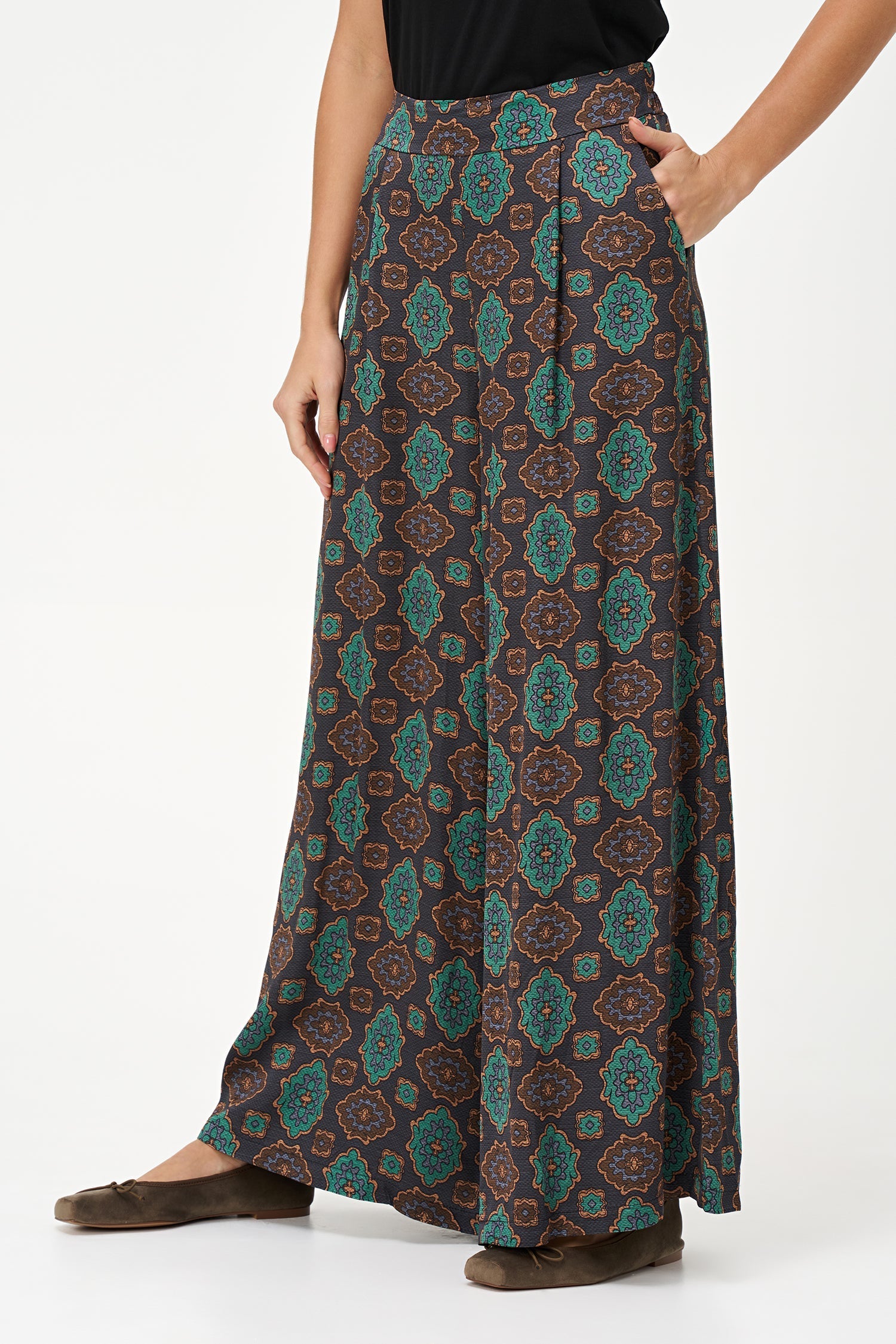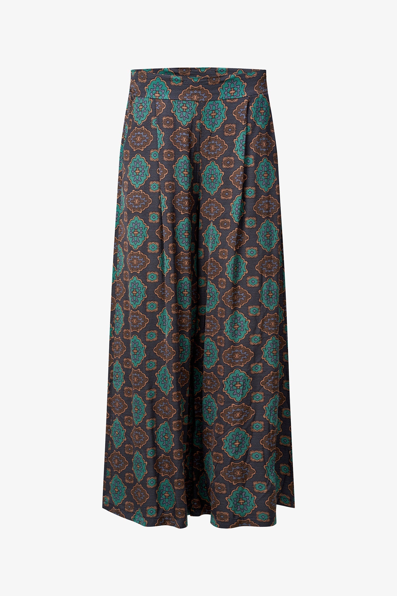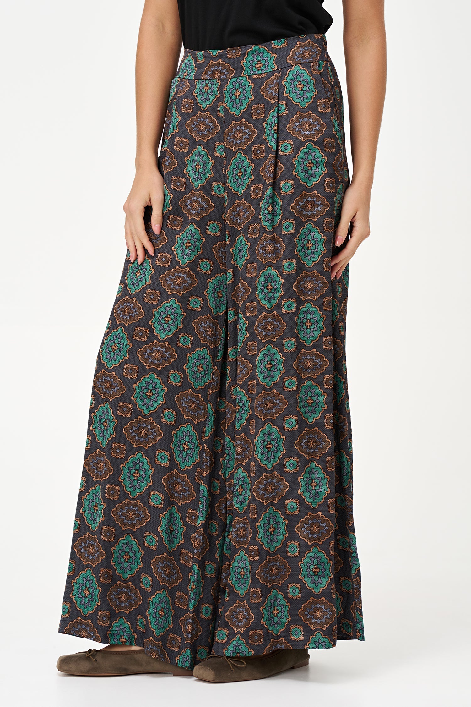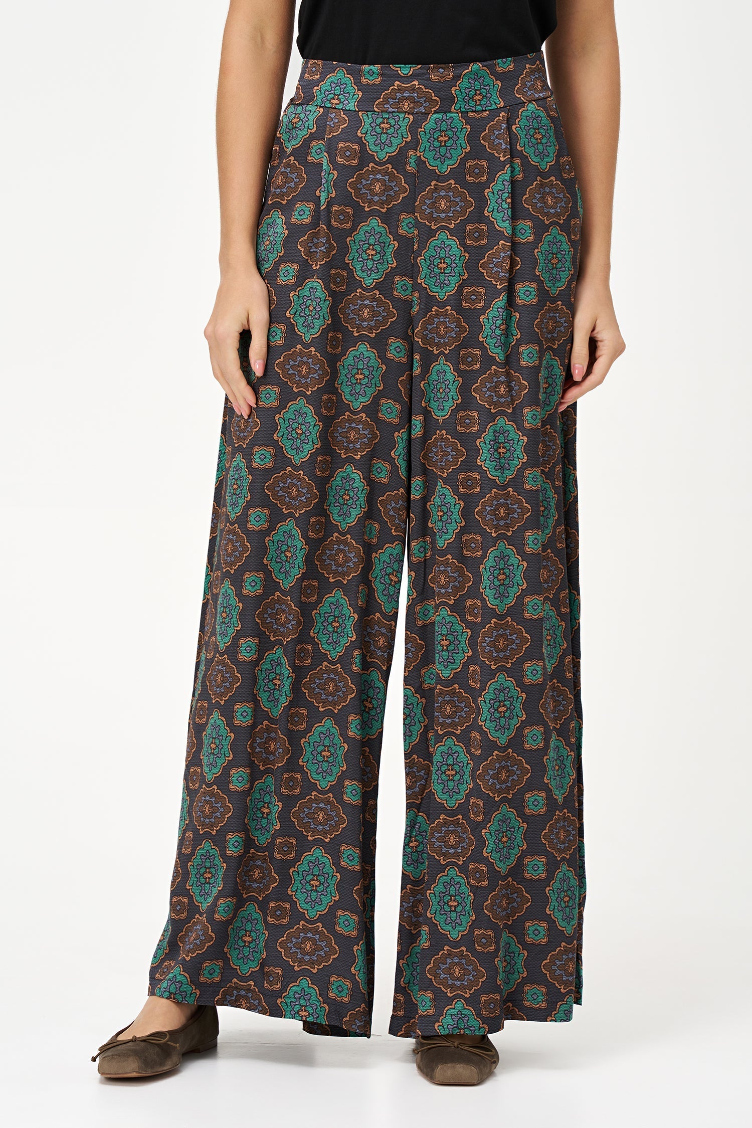 Women's Woven Printed Pull-On Wide Leg Pants With Slash Pockets. Made of 100% Viscose.