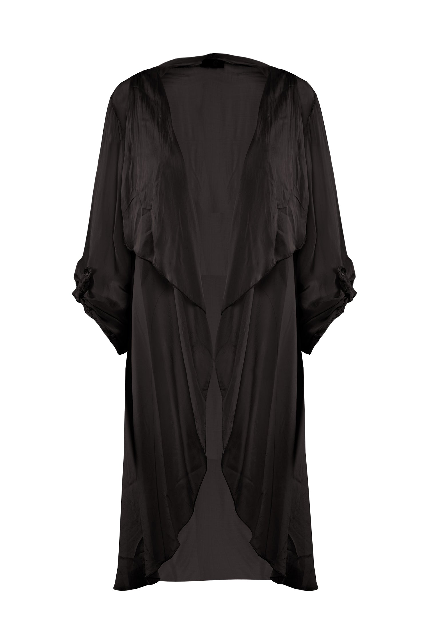 Women’s Woven Long Sleeve Cardigan. Composition: 70% Viscose and 30% Linen. Available in colors: Black and Military
