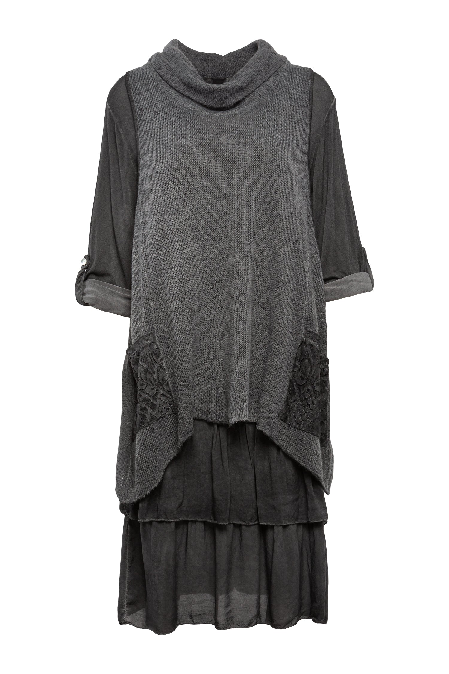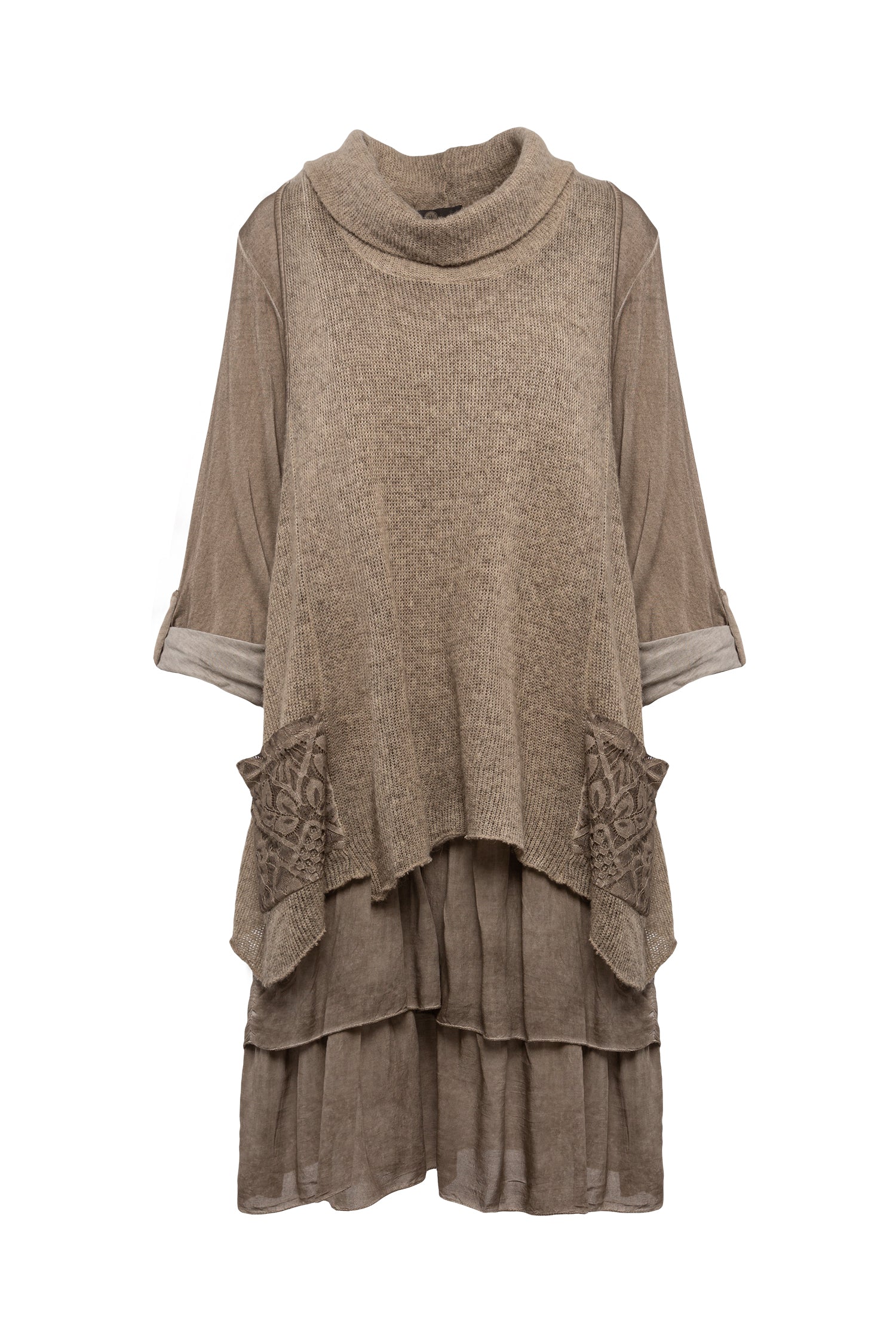 Women’s Knit Long Sleeve Dress. Composition: 50% Mohair and 50% Viscose. Available in colors: Anthracite, Cream, Orchid, Petrolio, and Taupe