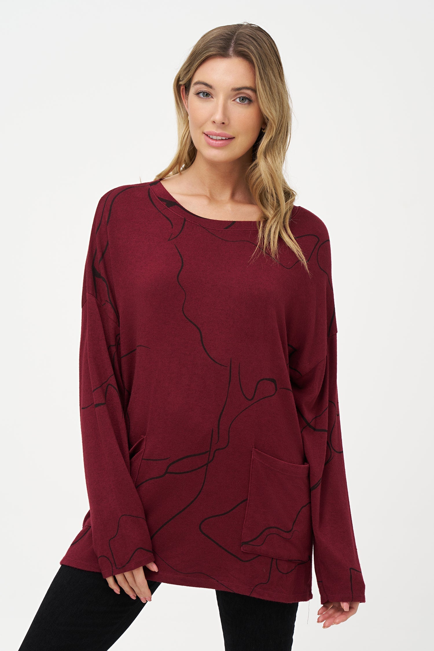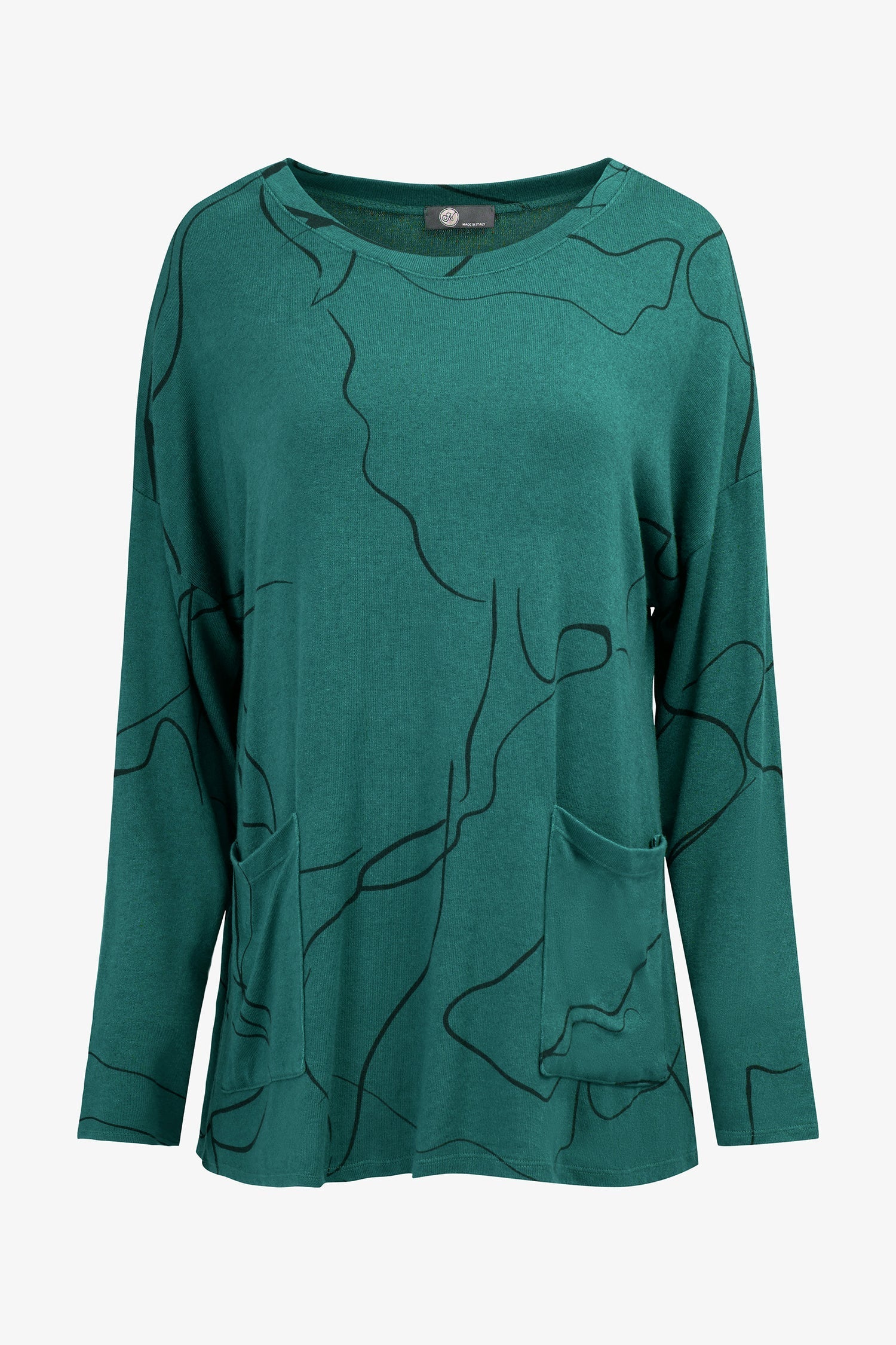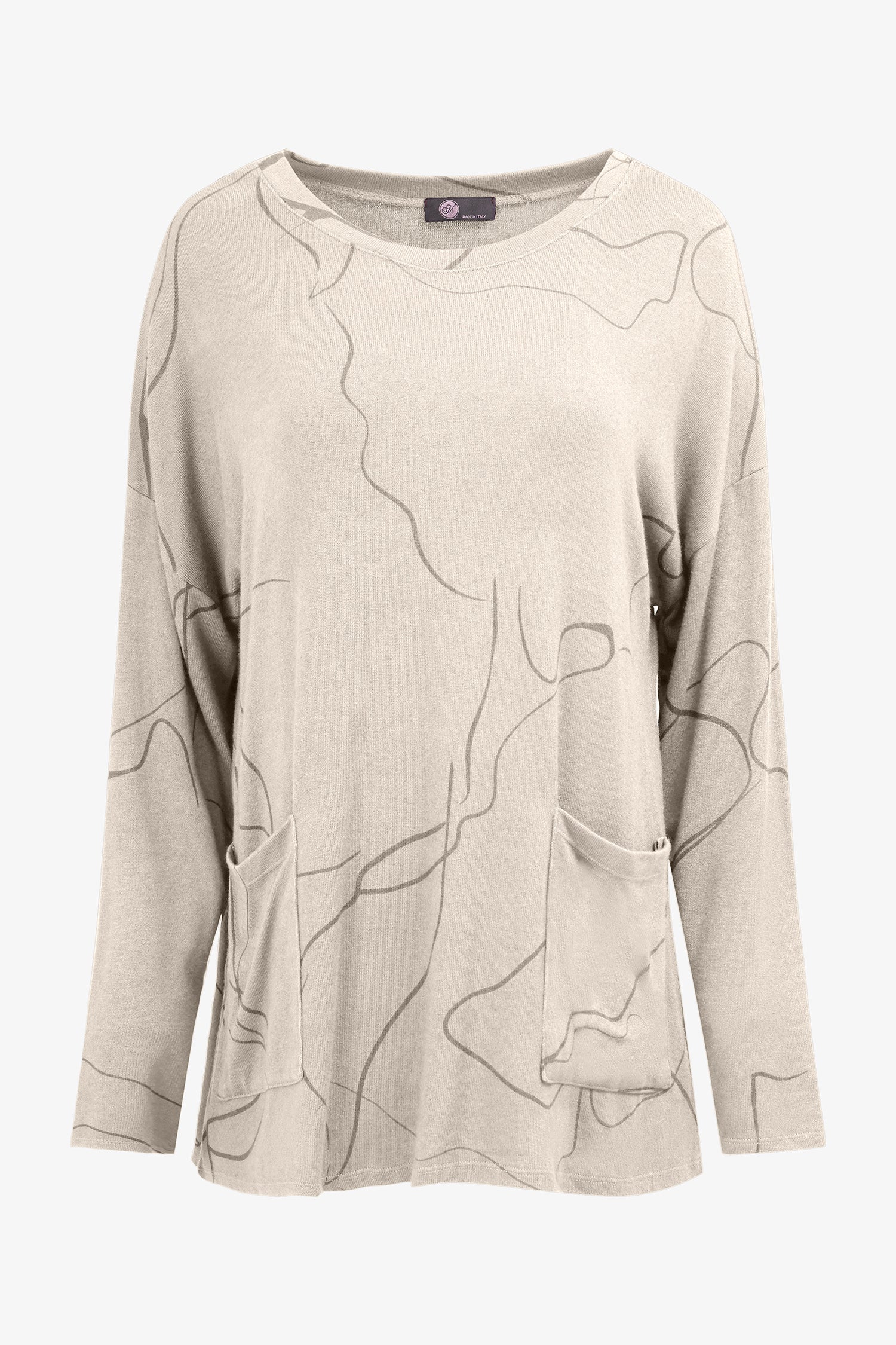 Women's Knit Wide Neck Tunic, With Patch Pockets And Long Sleeves With A Dropped Shoulder. Made of 52% Viscose, 26% Polyester, 22% Polyamide.