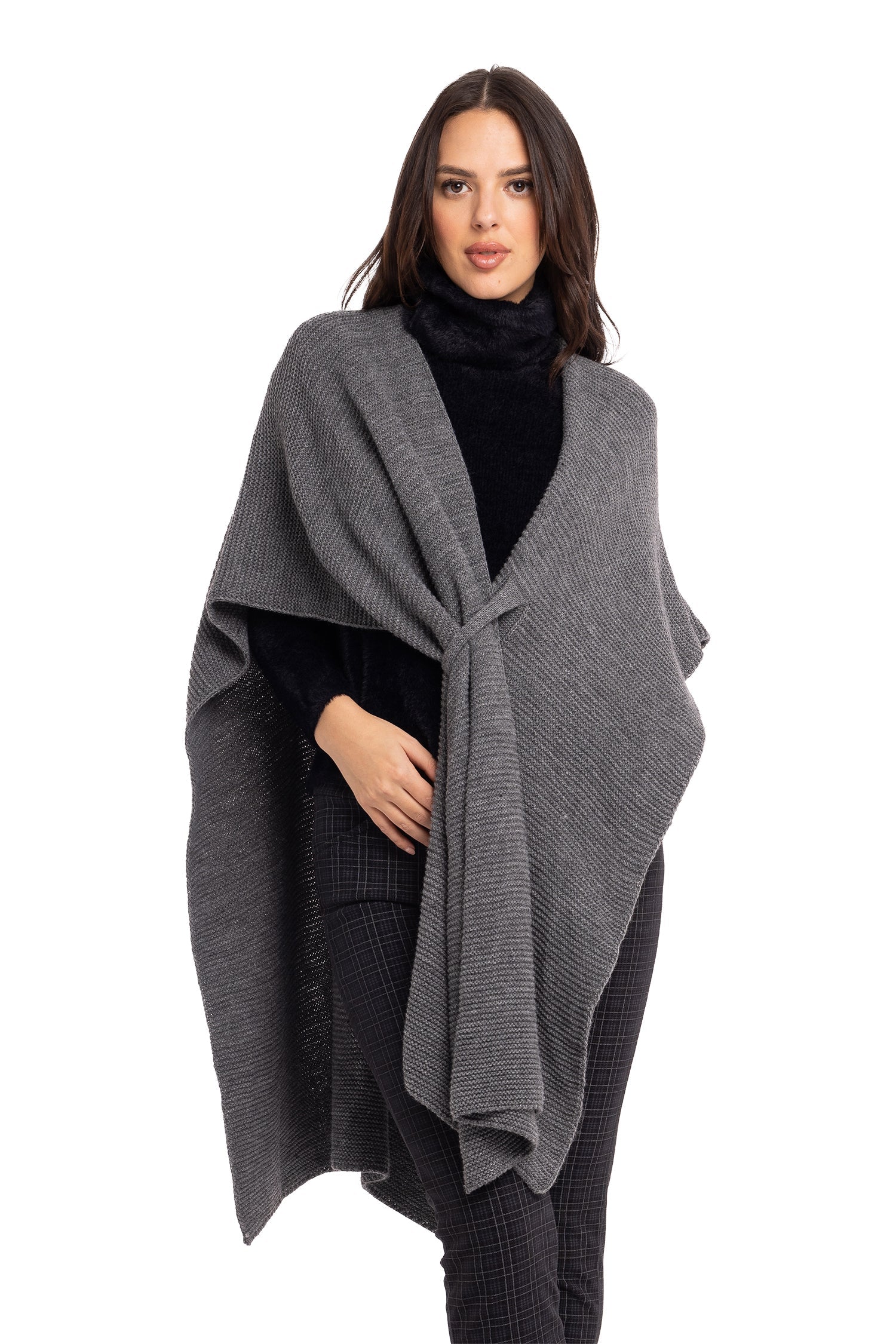 Fall-Winter Women’s Knit Poncho, crafted with 75% Acrylic, 10% Wool, 10% Viscose and 5% Alpaca. Timeless style, now -50% off. Limited stock.