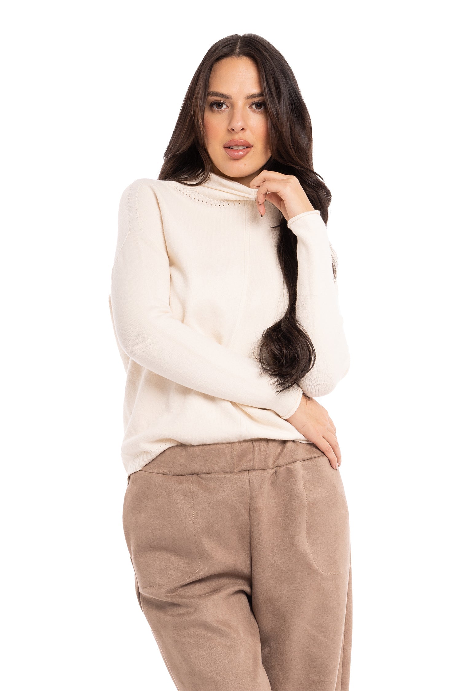 Fall-Winter Women’s Knit Long Sleeve Sweater, crafted with 50% Viscose, 28% Polyester and 22% Nylon. Timeless style, now -50% off. Limited stock.