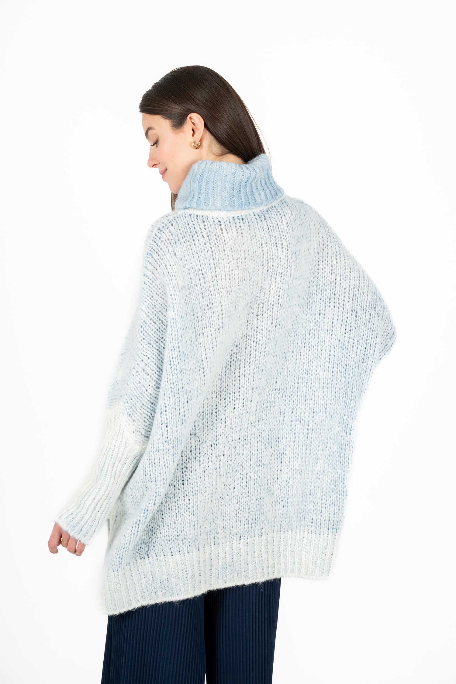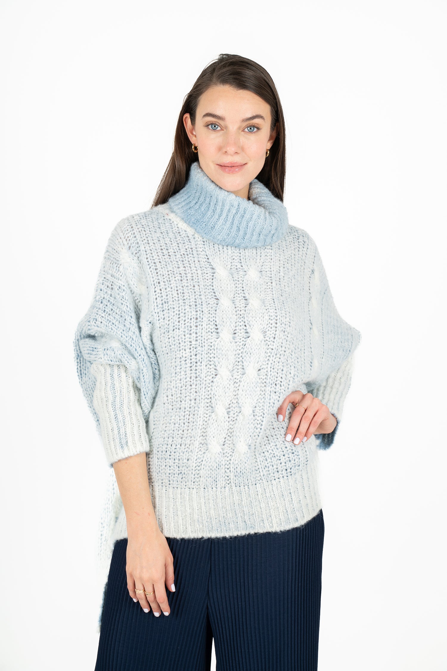 Women's knit oversized turtle-neck sweater, with long bat-sleeves, a dropped shoulder and a cable knit detail down the front. Composition: 37% Kid Mohair, 27% Acrylic, 20% Polyamide, 16% Wool.