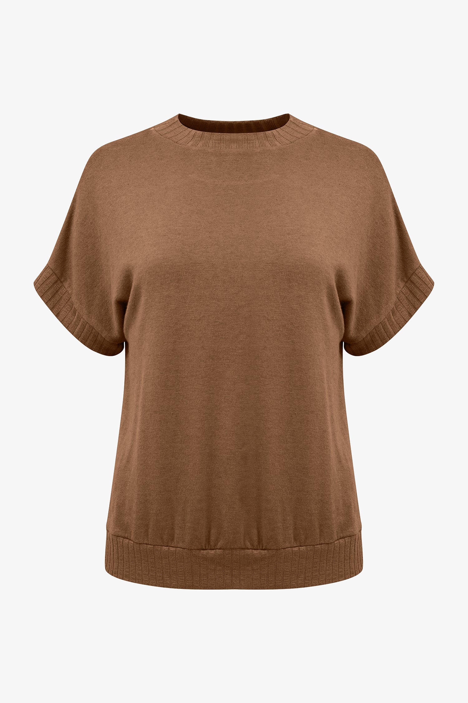 Women's Knit Cap-Sleeve Top, With A Crew-Neckline. Made of 52% Viscose, 26% Polyester, 22% Polyamide.