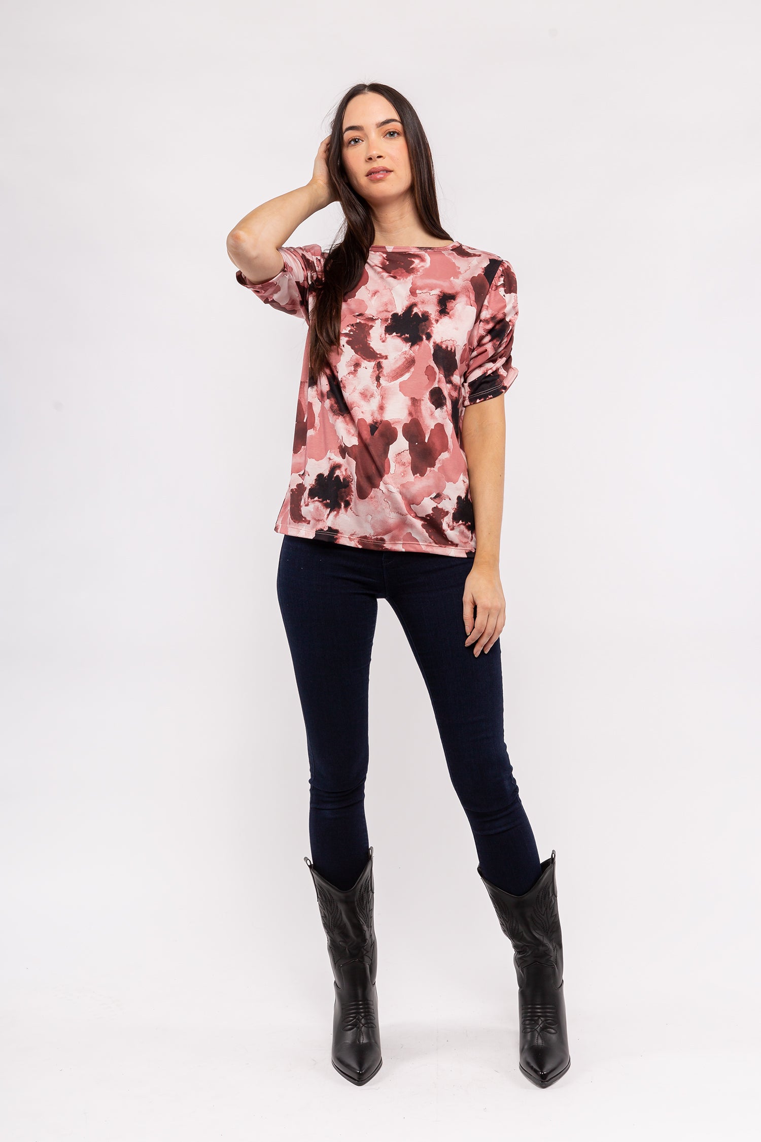Short Sleeve Top. Fabric: 95% Polyester 5% Elastane. Available in colors: Bloom.