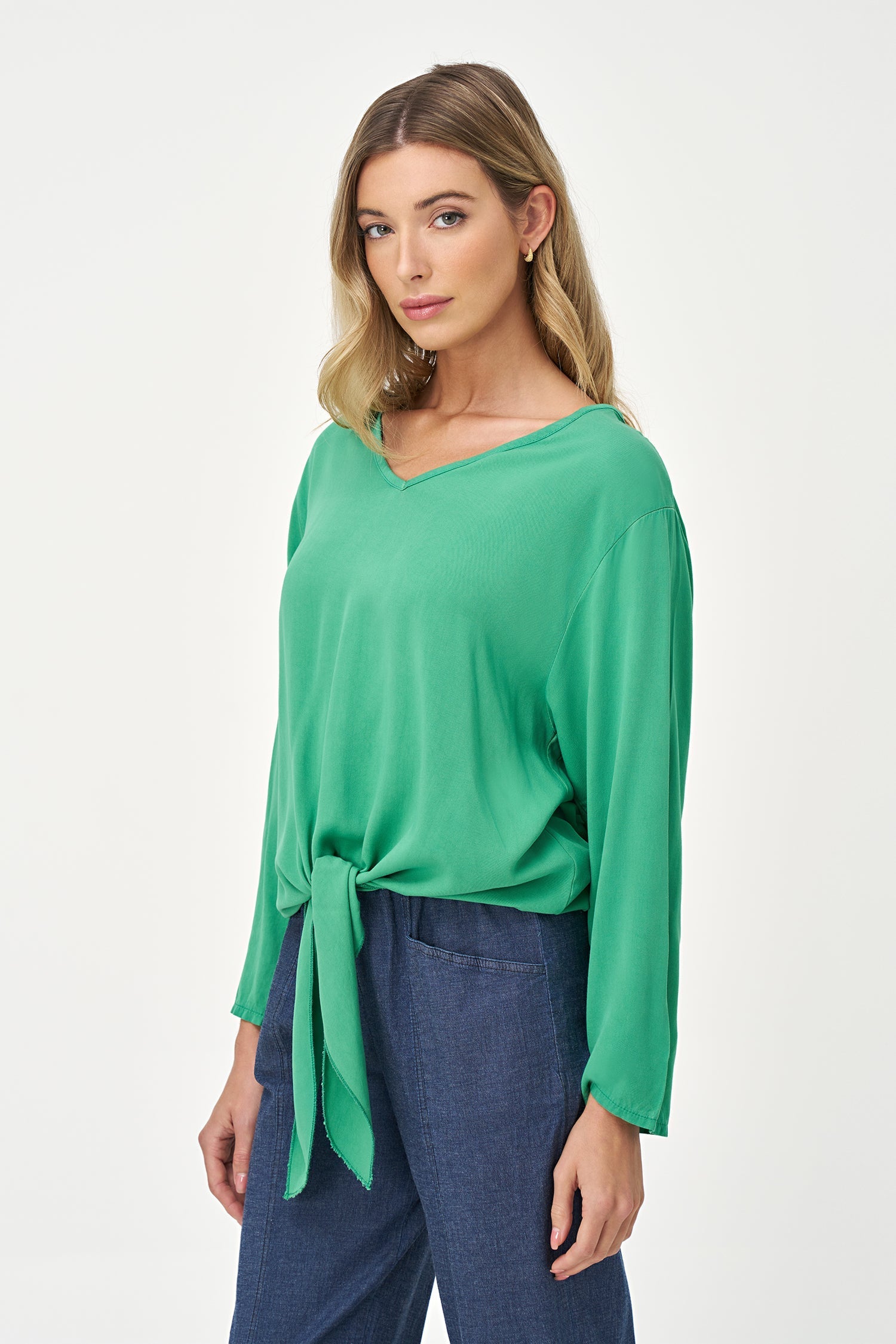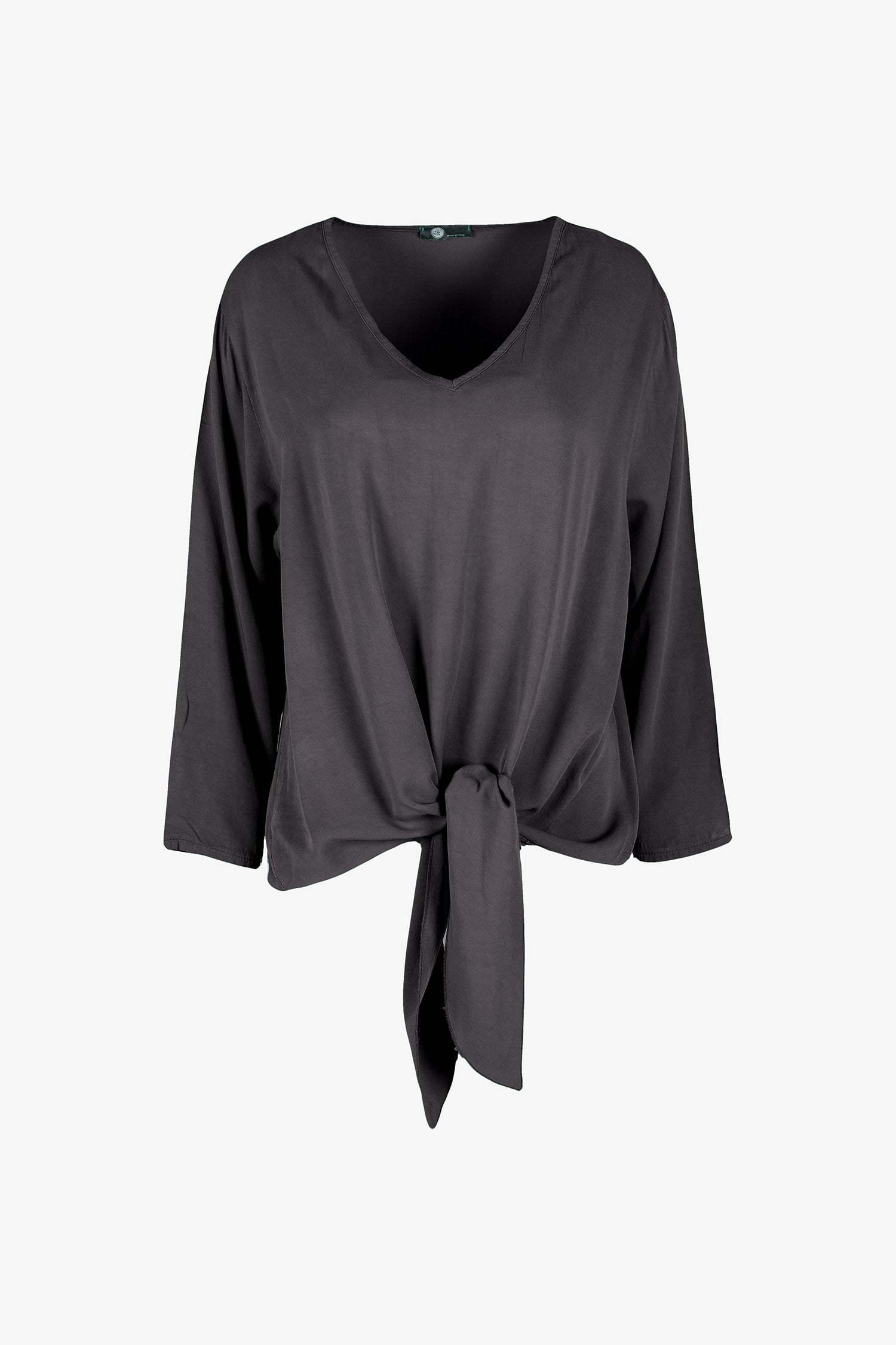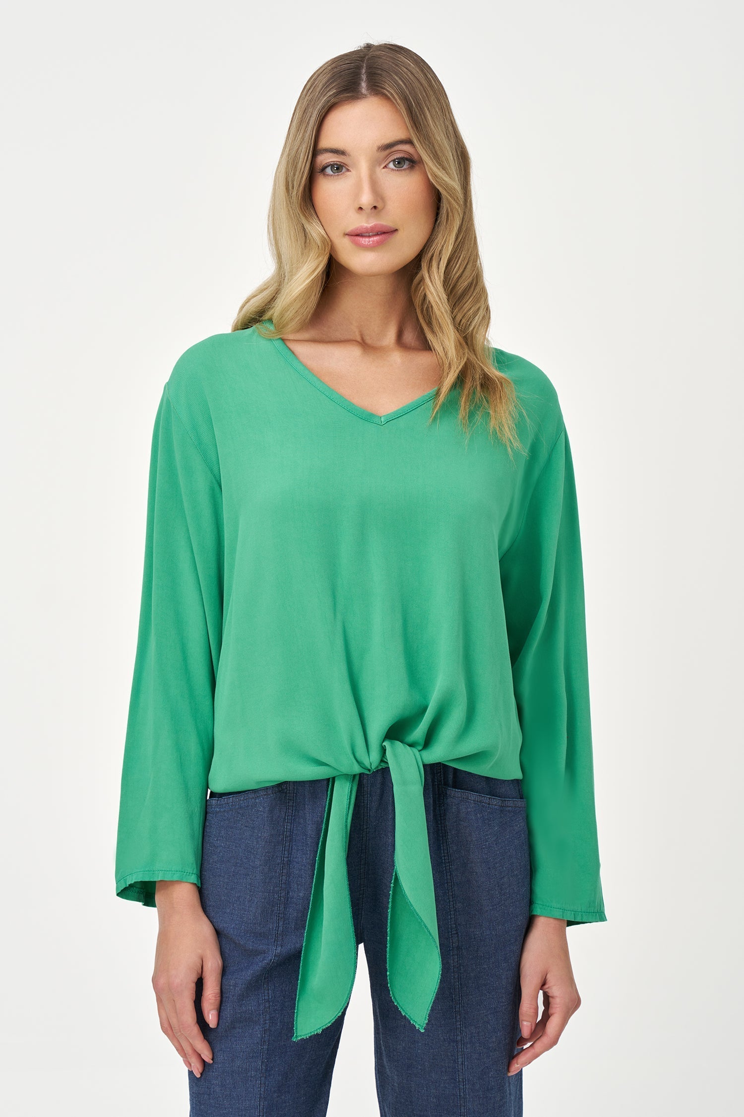 Women's Woven V-Neck Top, With Long Sleeves And A Front Tie At The Hemline. Made of 100% Viscose.