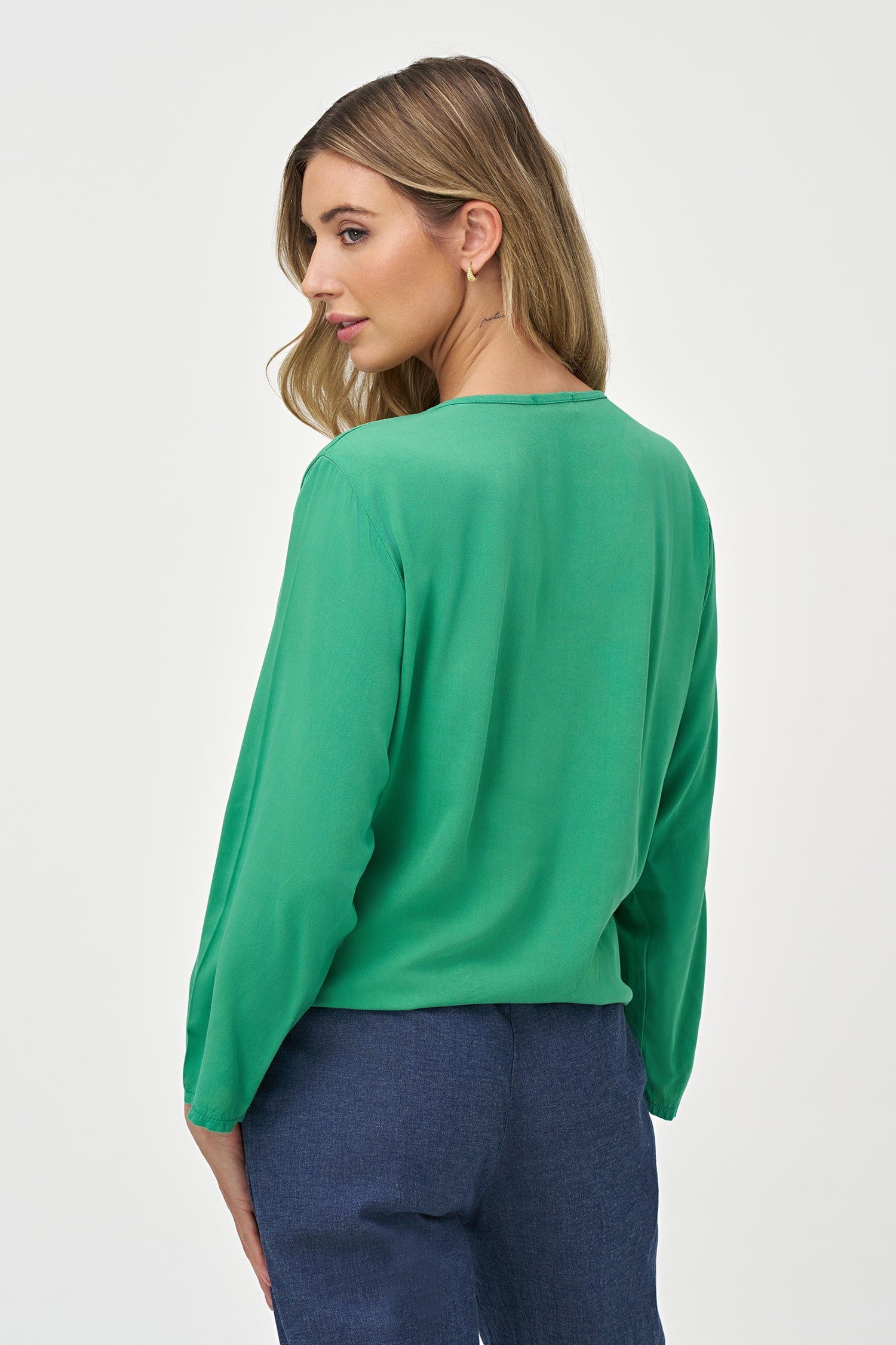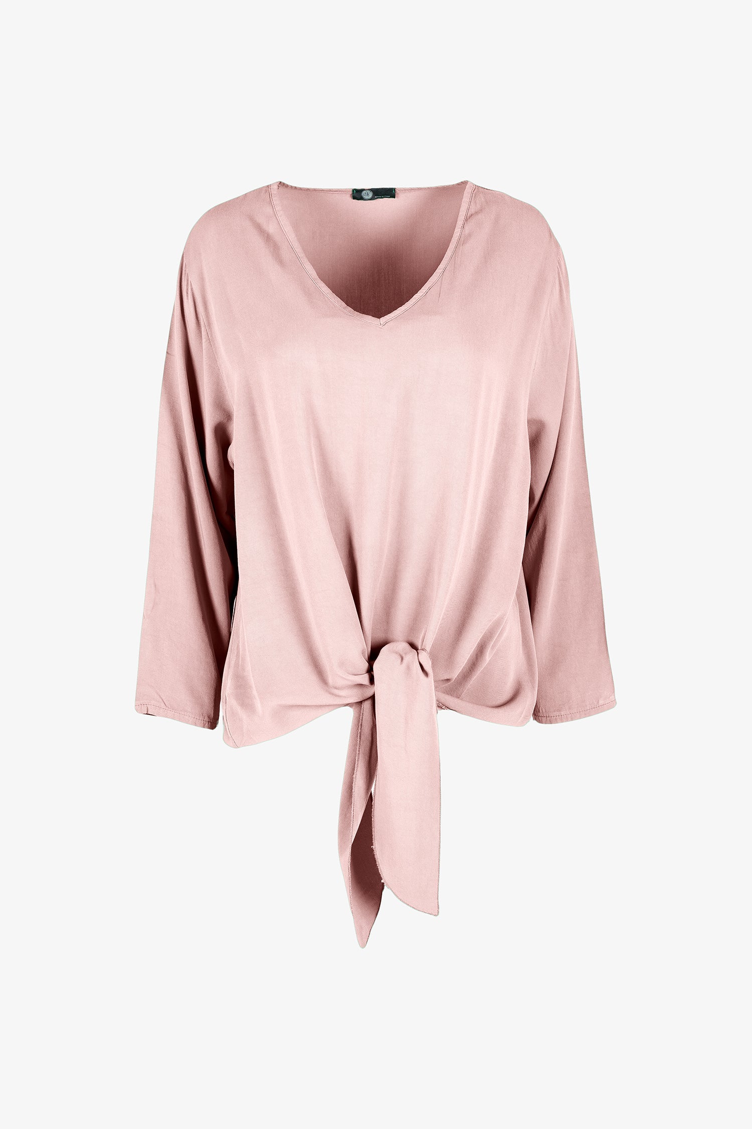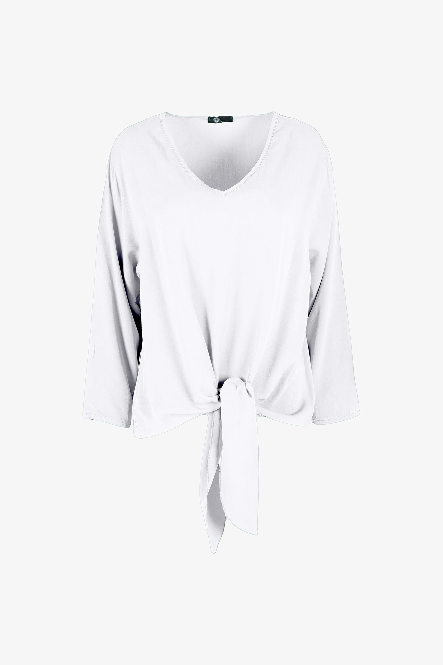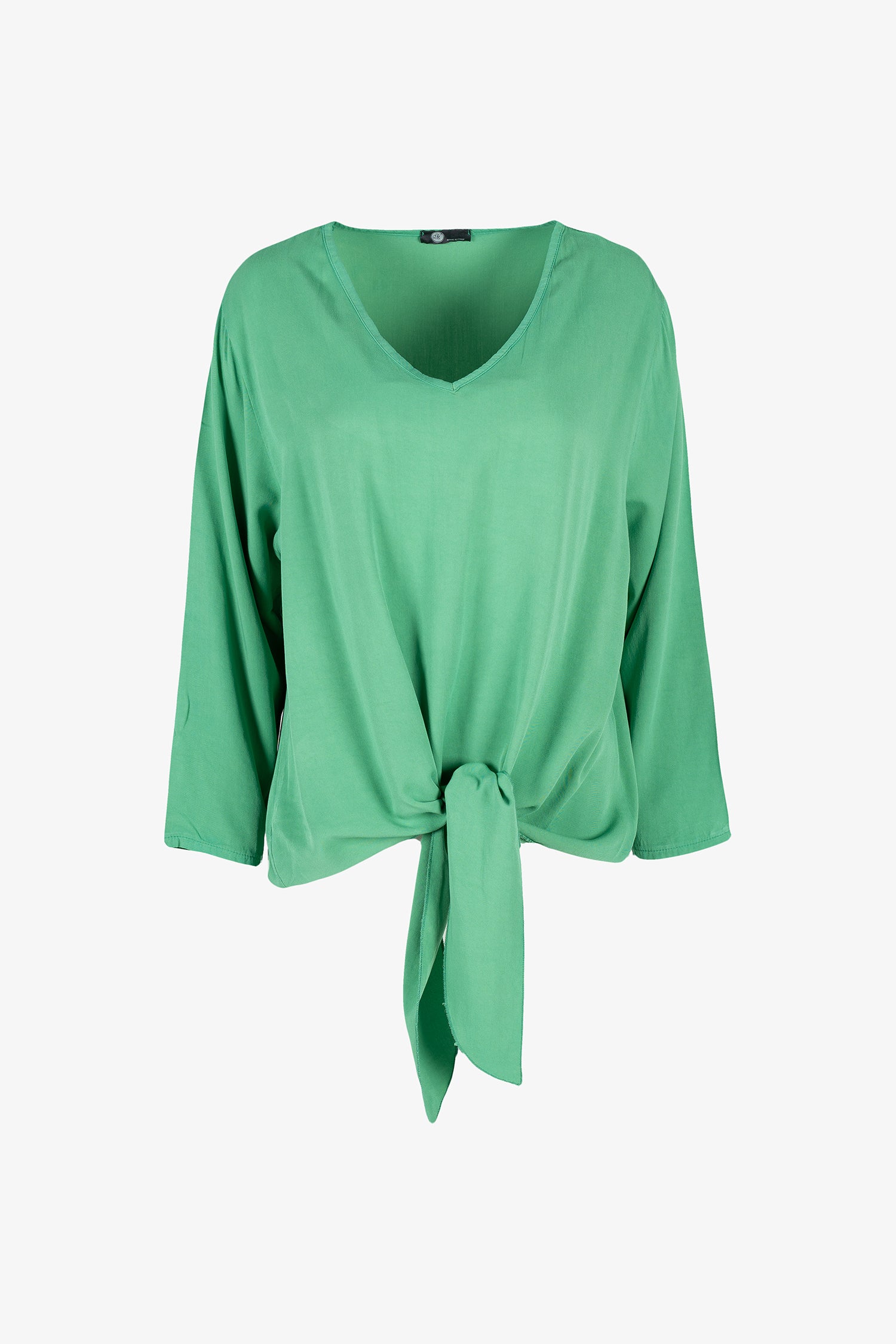 Women's Woven V-Neck Top, With Long Sleeves And A Front Tie At The Hemline. Made of 100% Viscose.