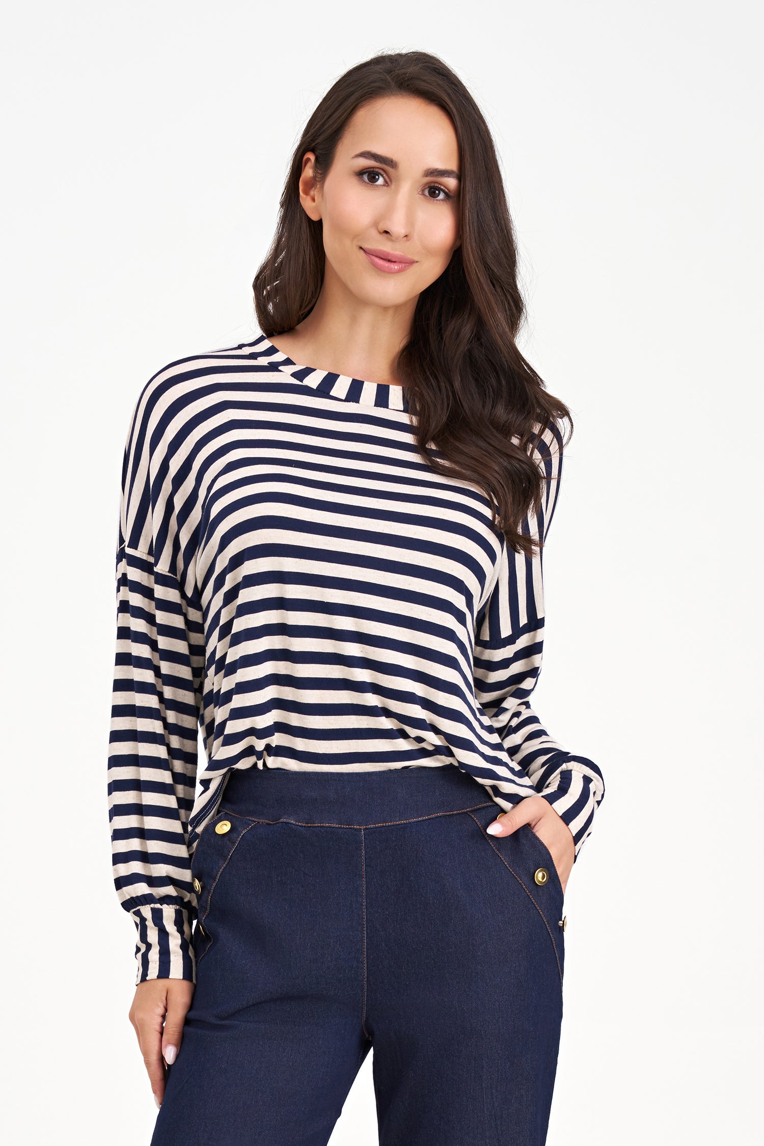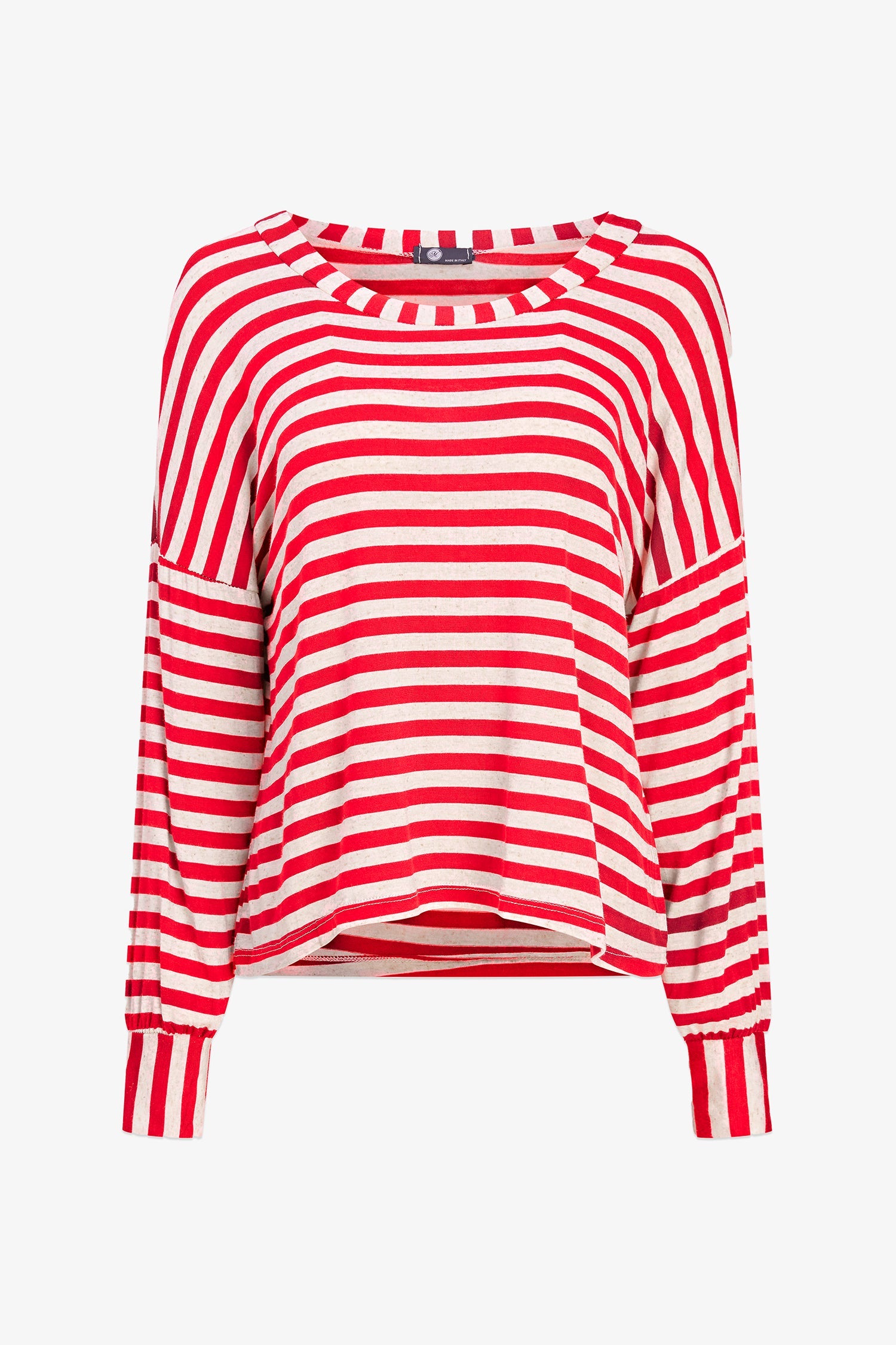 Discover the M Made in Italy Top in the stunning colors of Navy Stripes, Ruby Stripes, perfect for the Spring-Summer 2026 season. Part of the Spring collection, this Top is designed for Woman with premium fabric composition of 89% Viscose, 7.5% Linen and 3.5% Elastane. Ideal for stylish and comfortable looks.