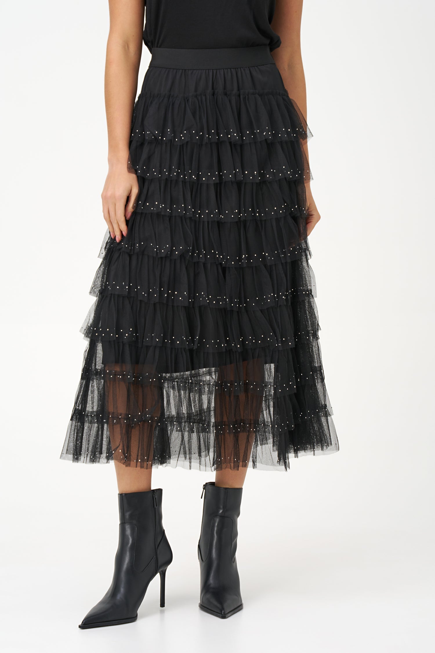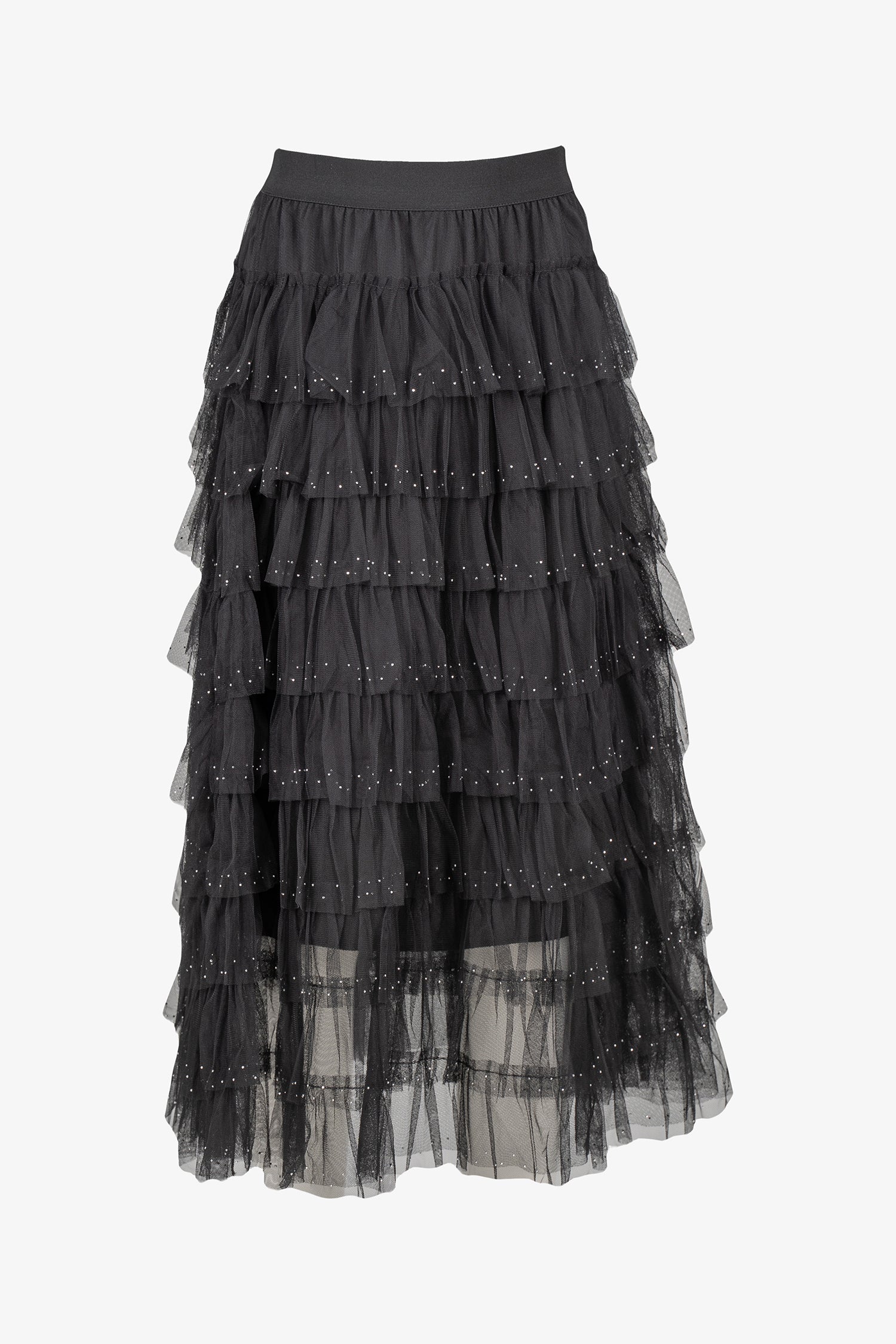 Women's Knit Tiered Pull-On Skirt, With Decorative Studs. Made of 100% Polyester.