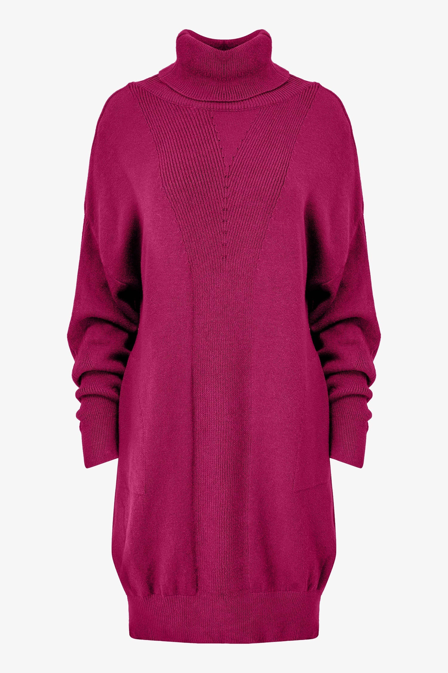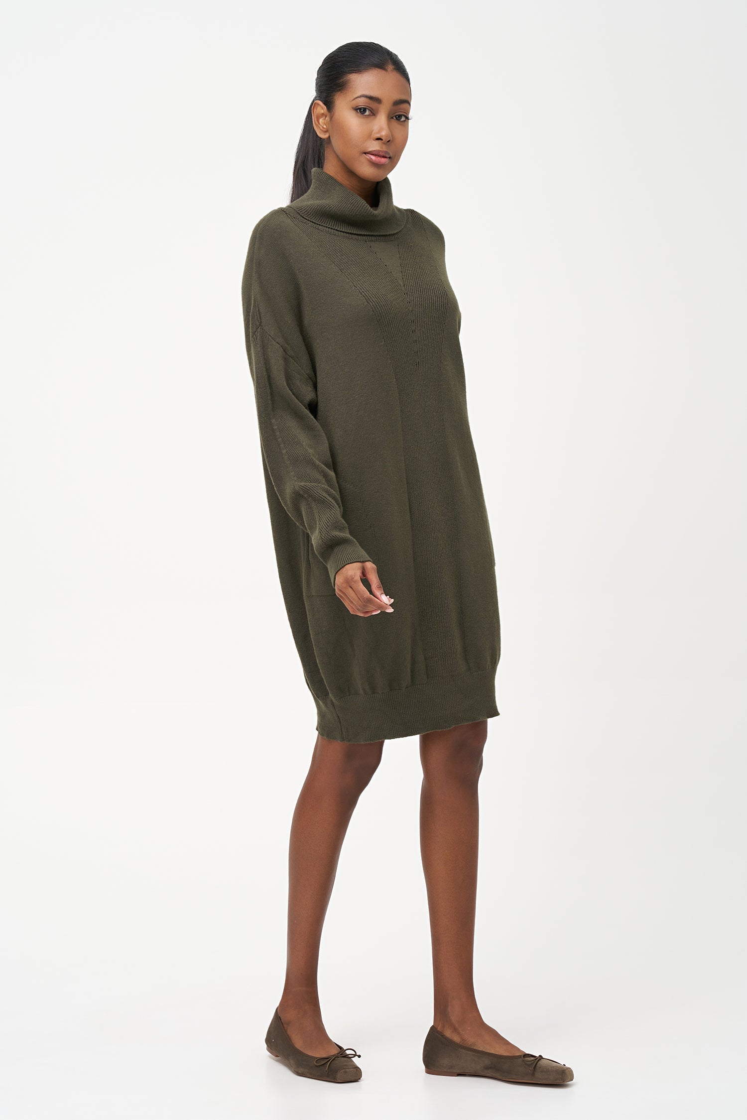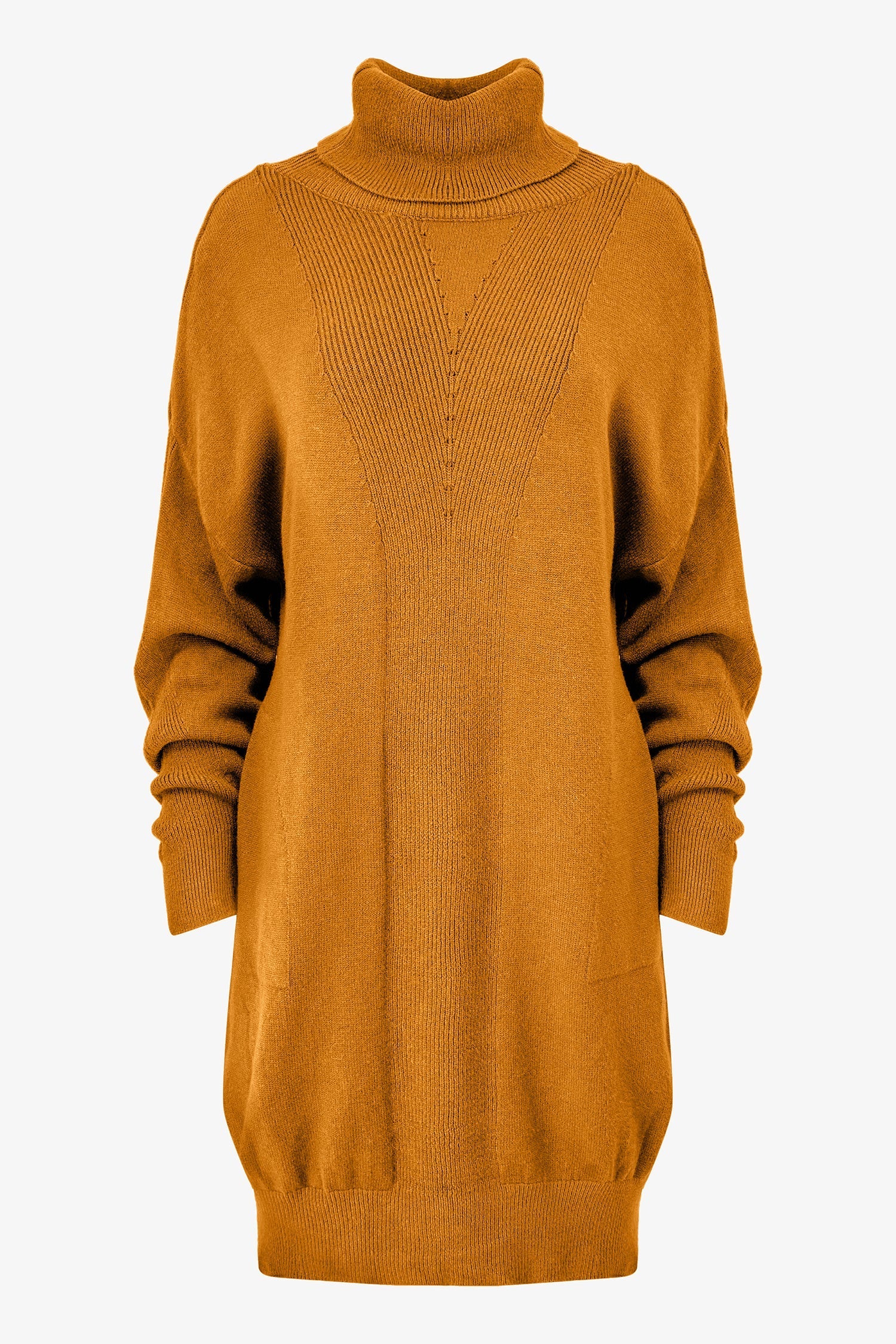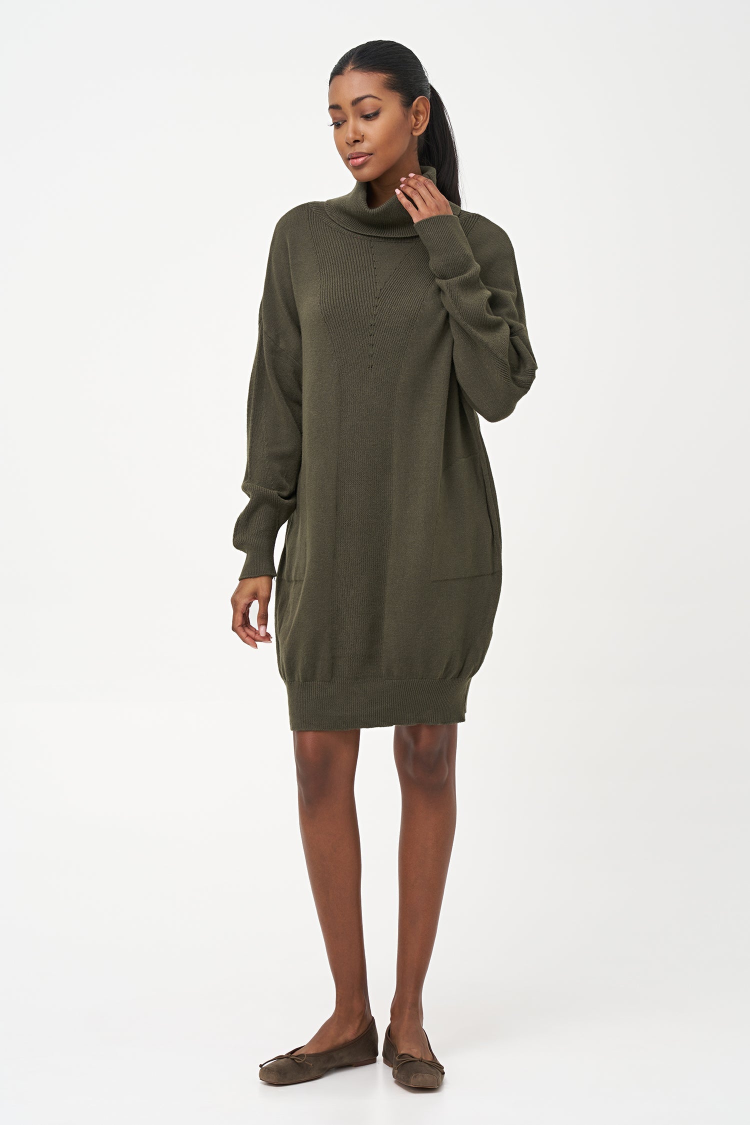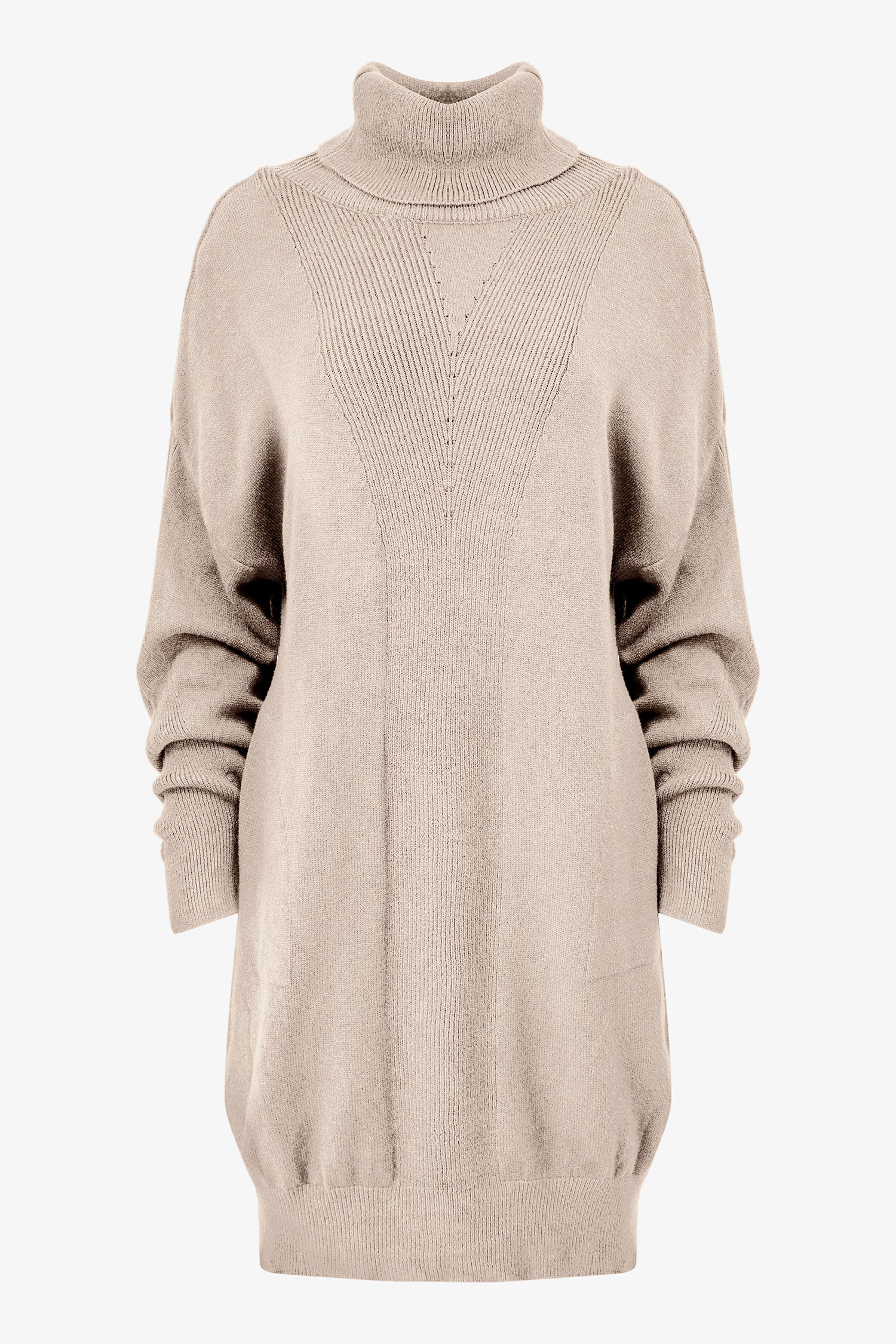 Women's Knit Turtle-Neck Dress, With Long Sleeves And Side Seam Pockets. Made of 52% Viscose, 18% Wool, 15% Polyamide, 15% Polyester.