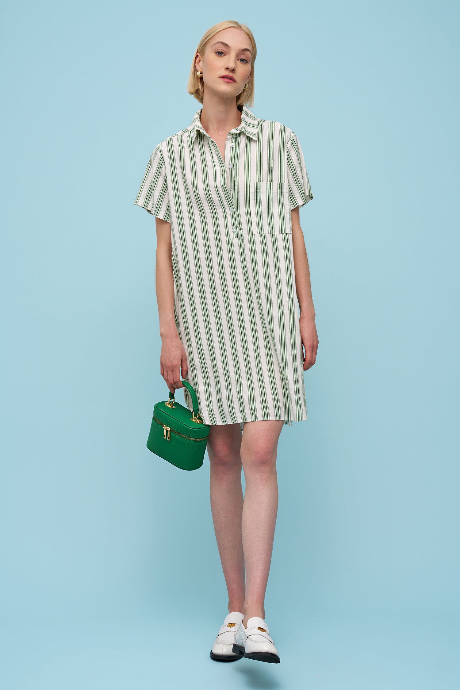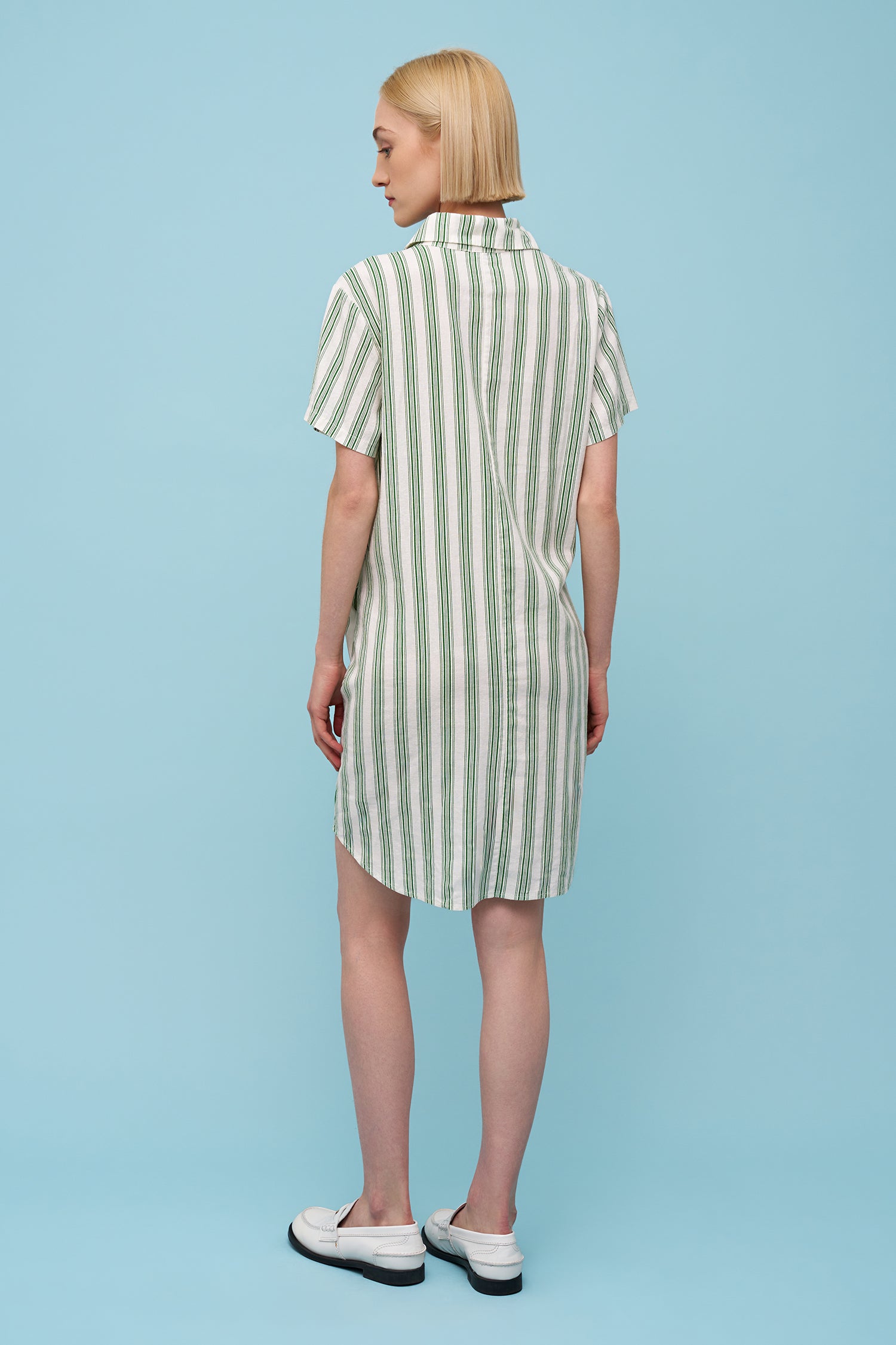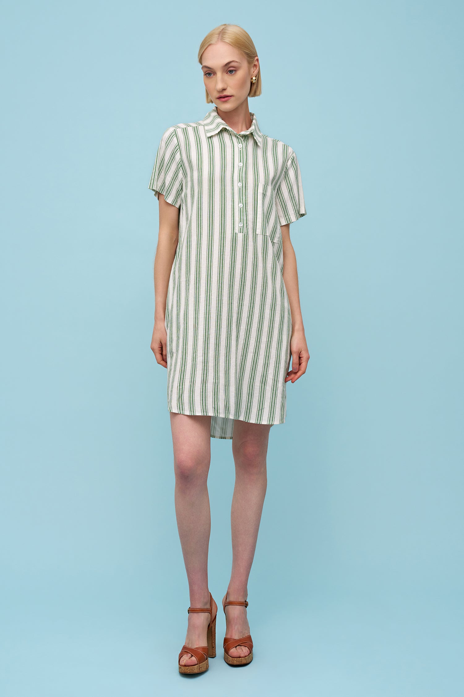Make a statement in this exquisite Dress from the Astrid SS26 collection. Expertly tailored from 70% Viscose and 30% Linen, this piece features feminine details and a sophisticated Navy Stripe. Ideal for warm weather occasions, offering an effortless one-piece outfit solution.