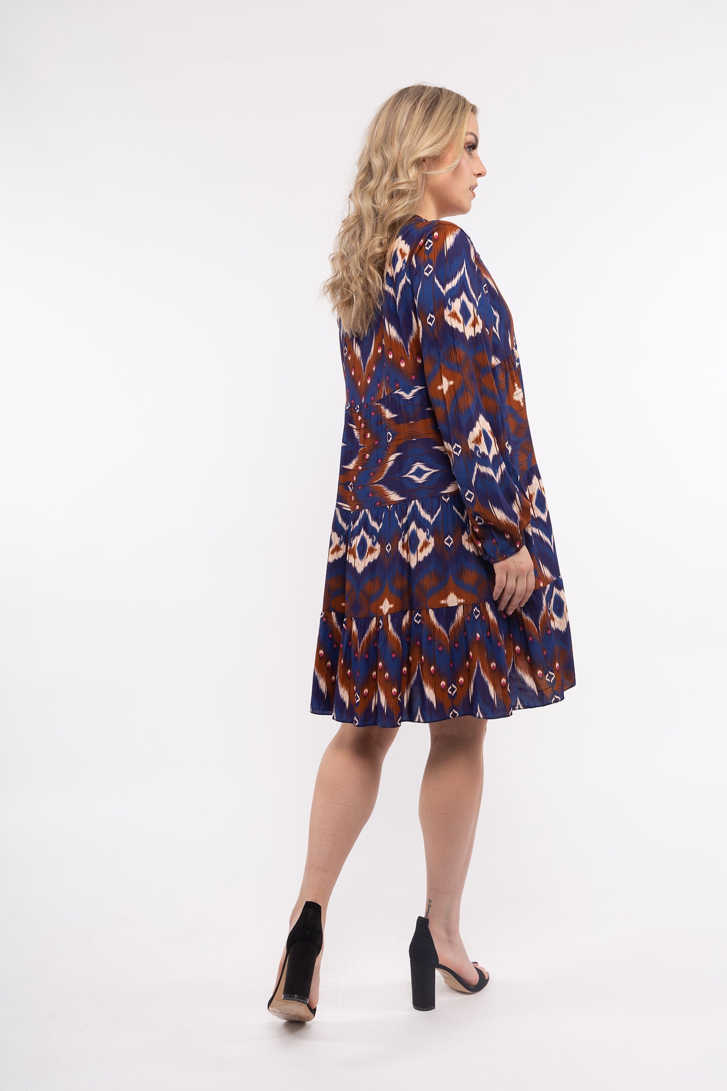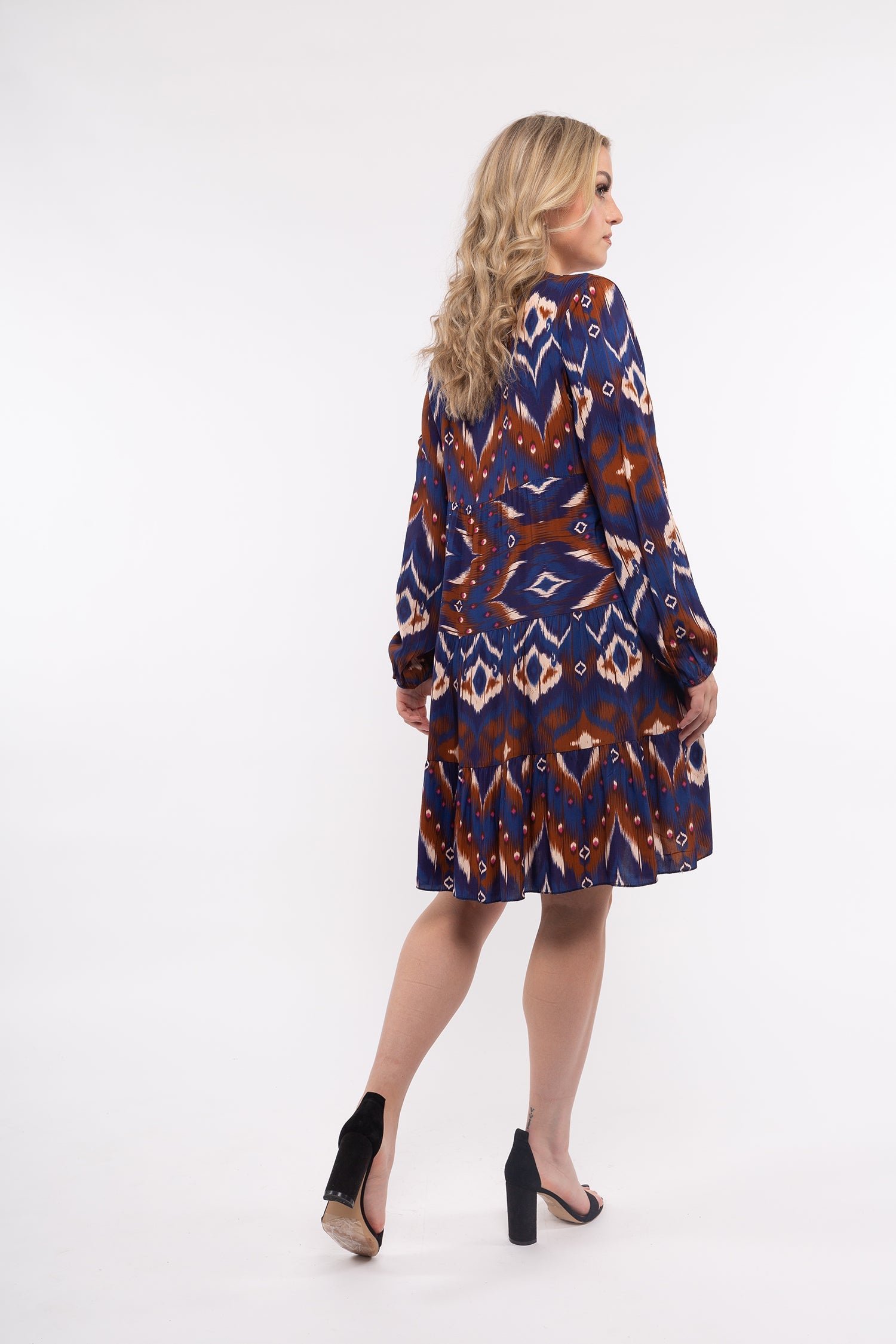Women’s Woven Long Sleeve Dress. Composition: 100% Viscose. Available in colors: Navy Combo