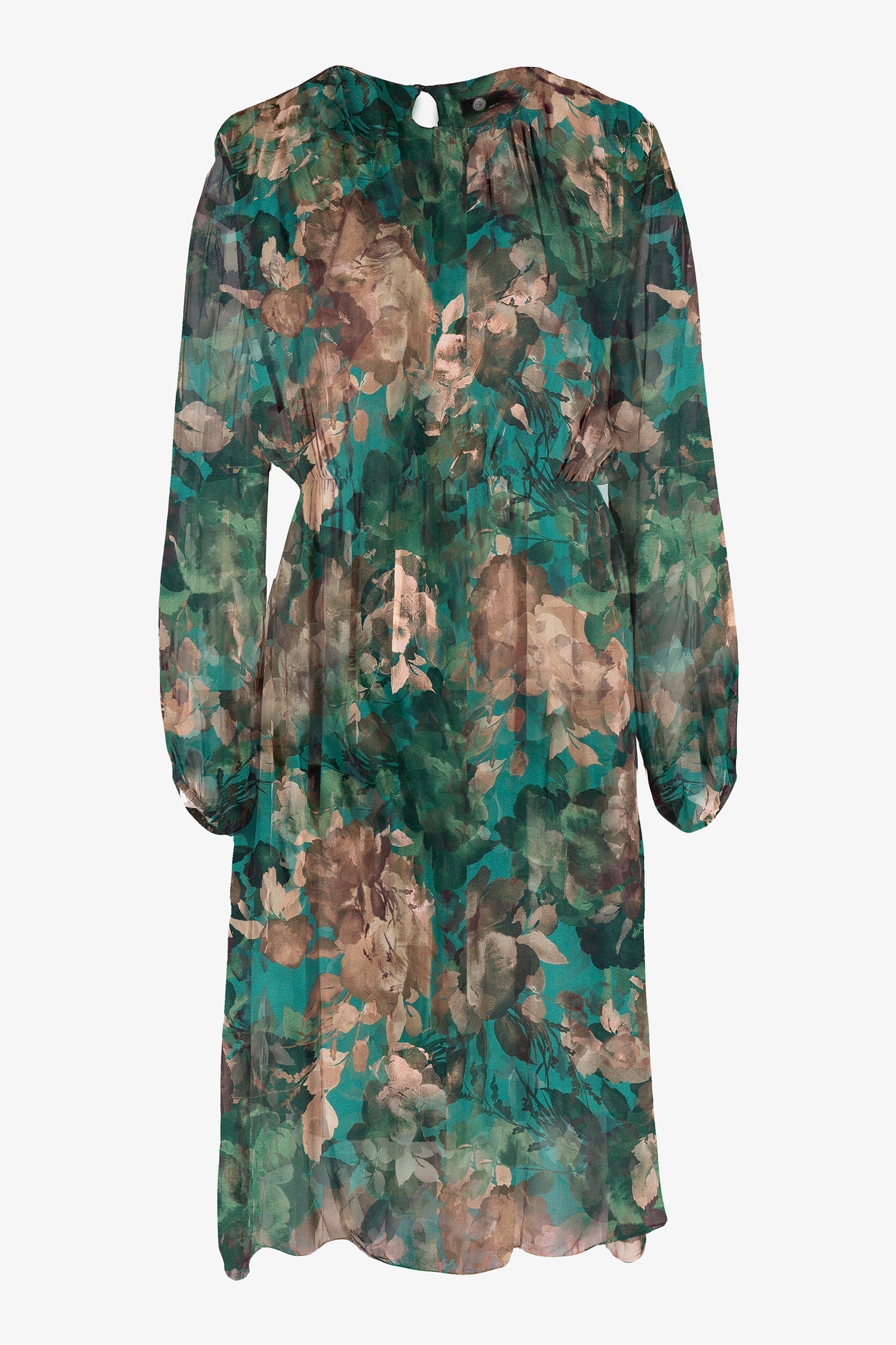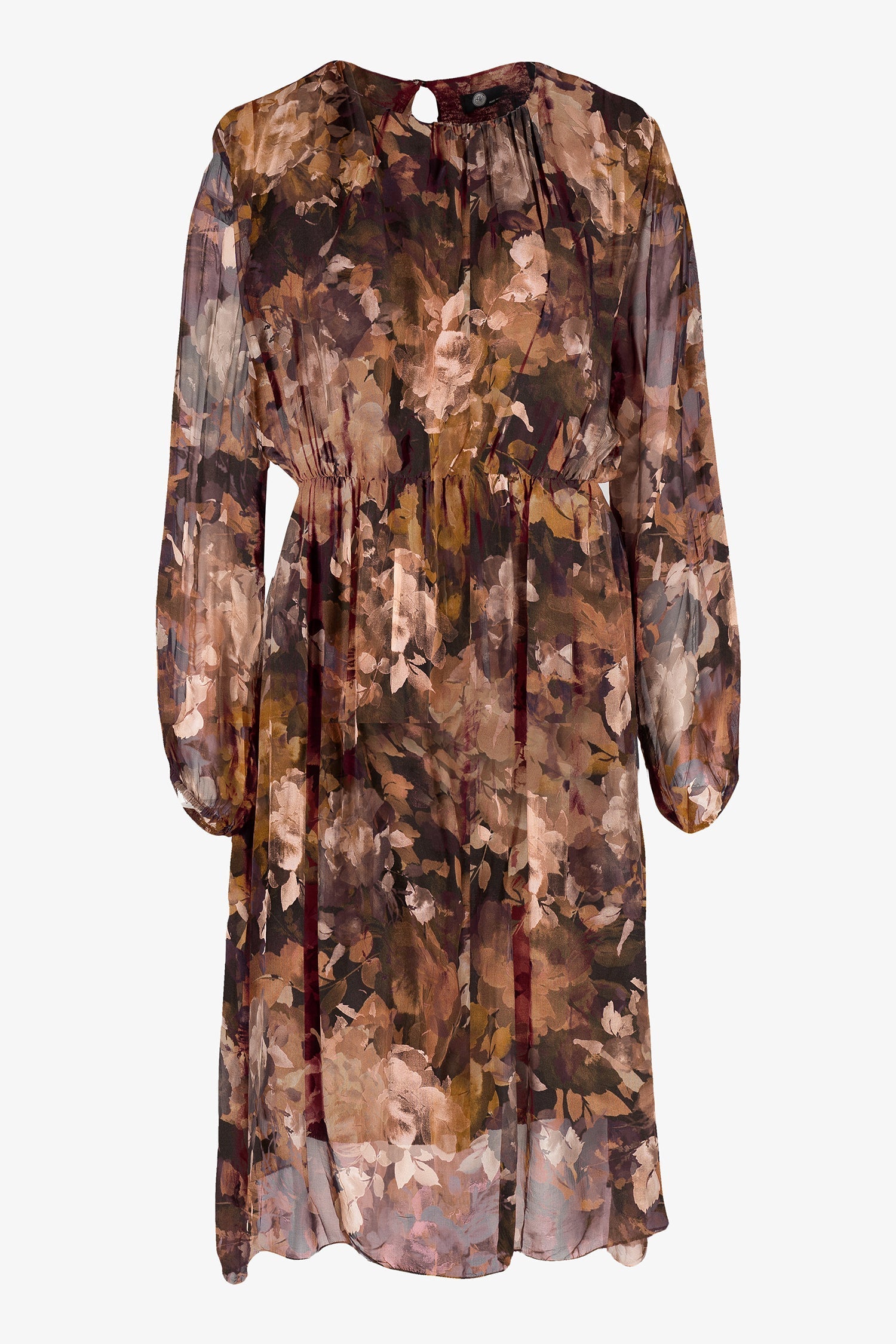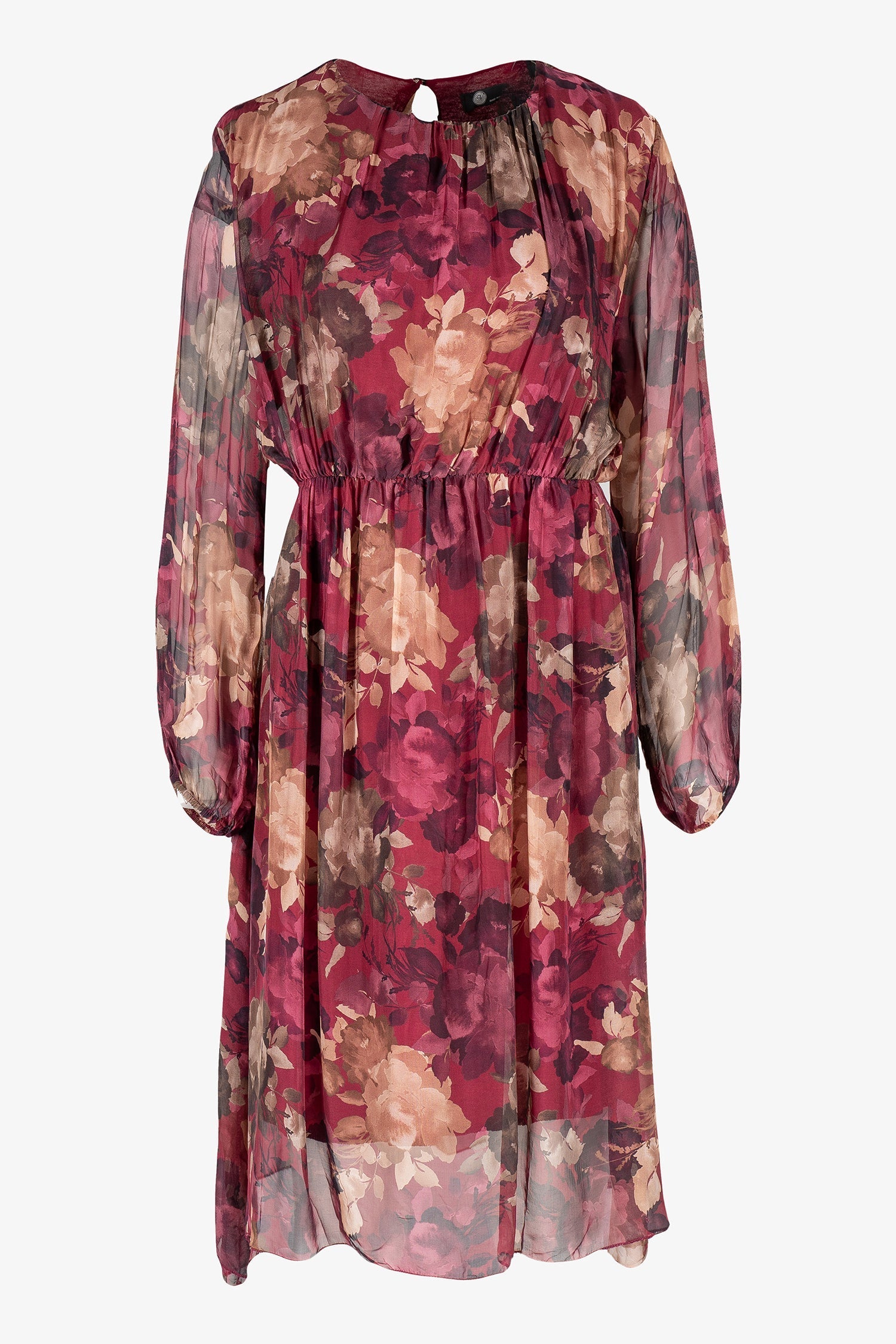 Women's Woven Dress, With Crew-Neckline, Long Sleeves And A Cinched Elastic Waist. Made of 70% Viscose, 30% Silk.
