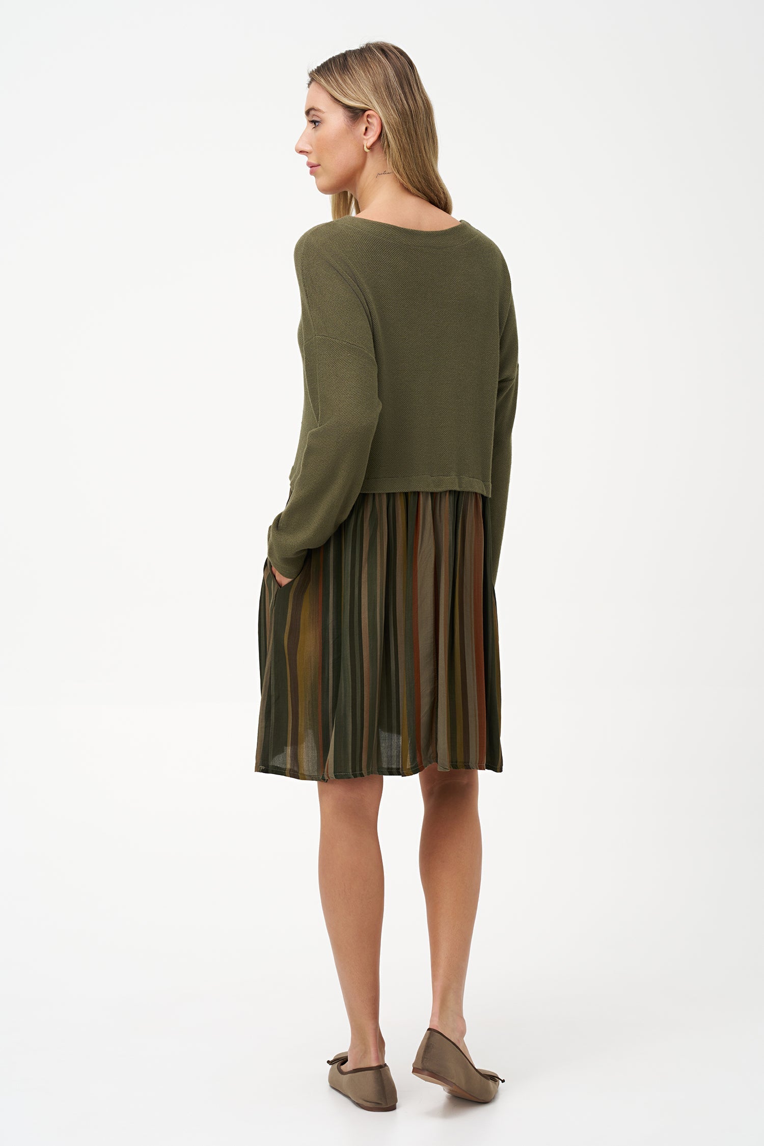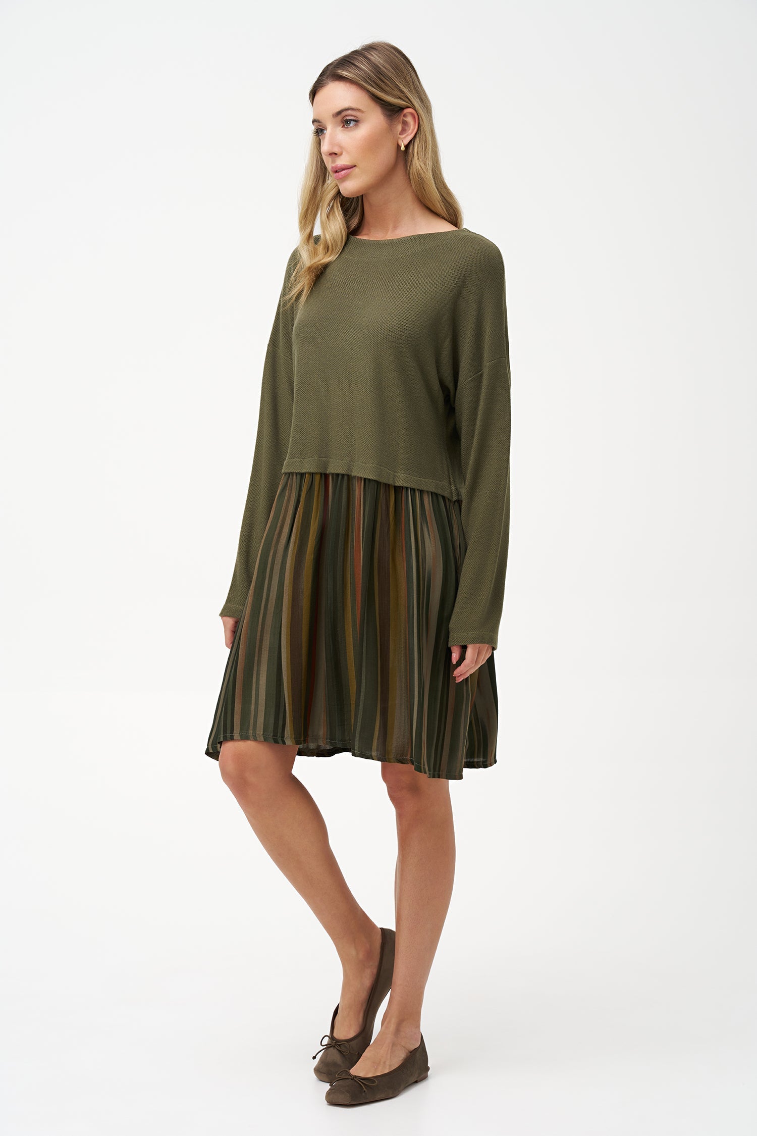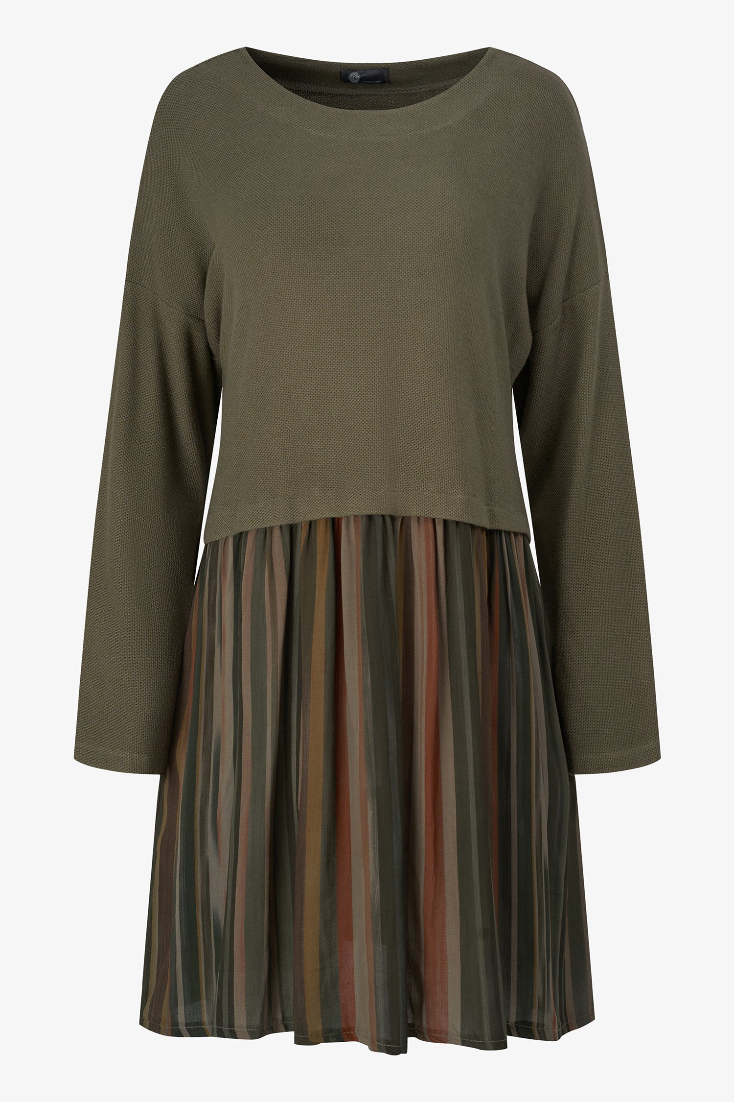 Women's Wide-Neck, Long Sleeve Dress, With Side Seam Pockets (Knit Upper-Body With A Woven Lower-Body). Made of 75% Viscose, 20% Polyester, 5% Elastane.
