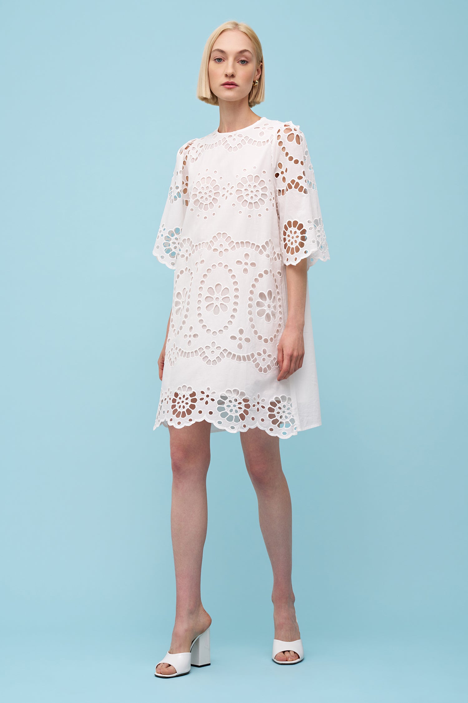 Make a statement in this exquisite Dress from the Astrid SS26 collection. Expertly tailored from 100% Cotton, this piece features feminine details and a sophisticated White. Ideal for warm weather occasions, offering an effortless one-piece outfit solution.