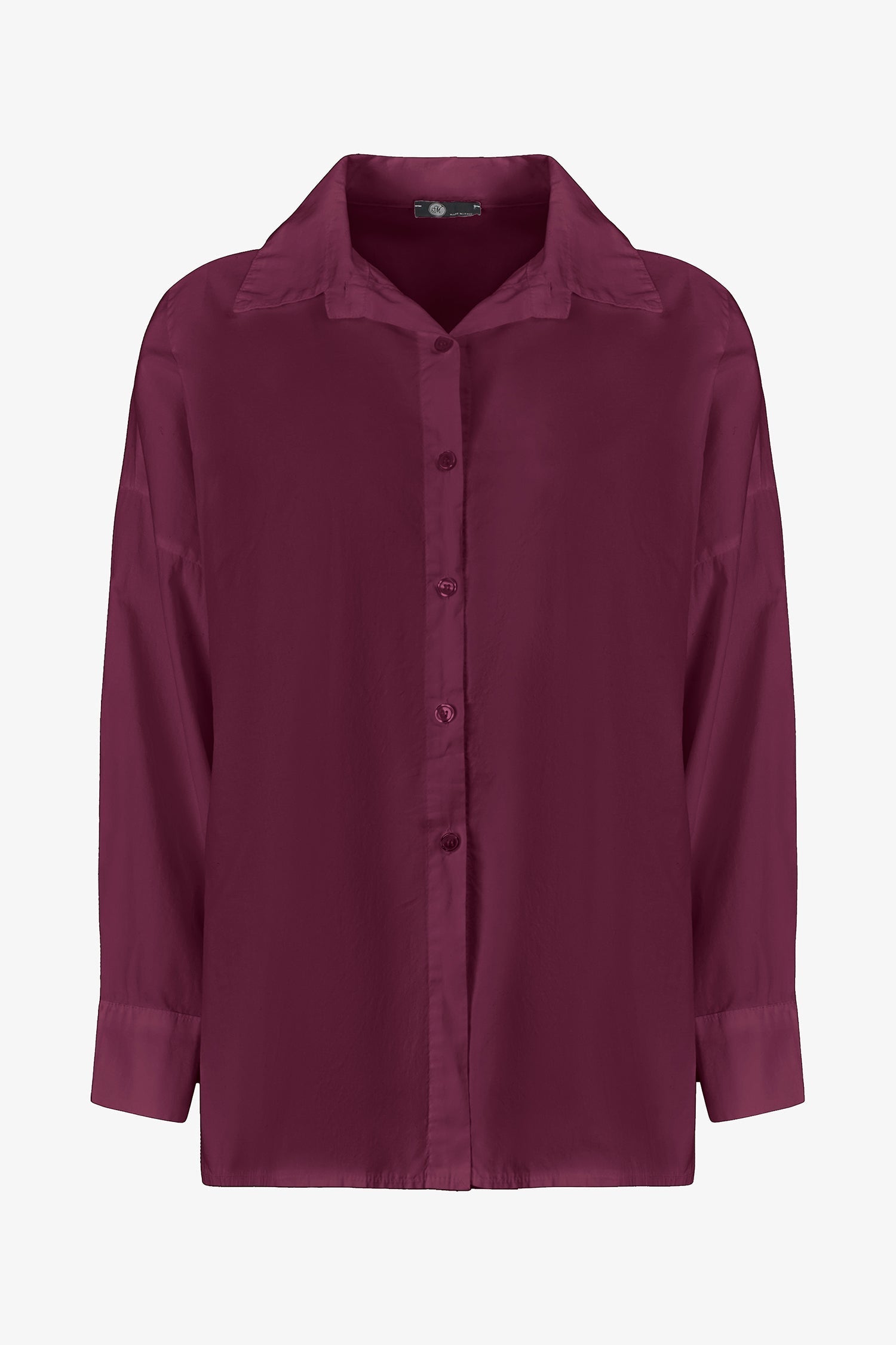 Women's Woven Button-Down Long Sleeve Shirt, With A Pleated Back Detailing. Made of 100% Cotton.
