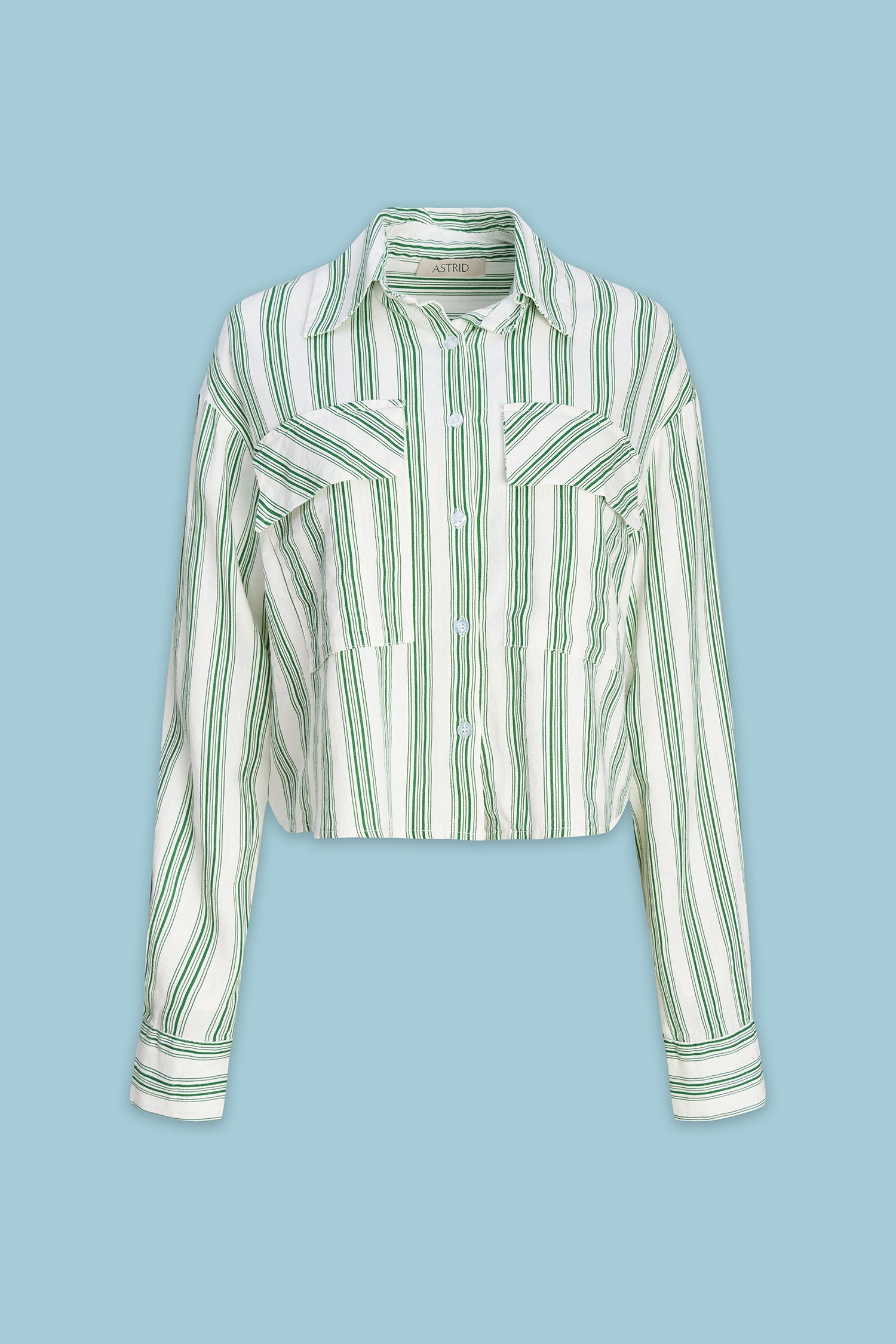 Refresh your wardrobe with this stylish Shirt from the Astrid Spring Summer 2026 collection. Crafted from 70% Viscose and 30% Linen, it features a Navy Stripe and Green Stripe design perfect for the season. Whether styled with denim or tailored trousers, this piece offers a chic, breathable fit for everyday elegance.