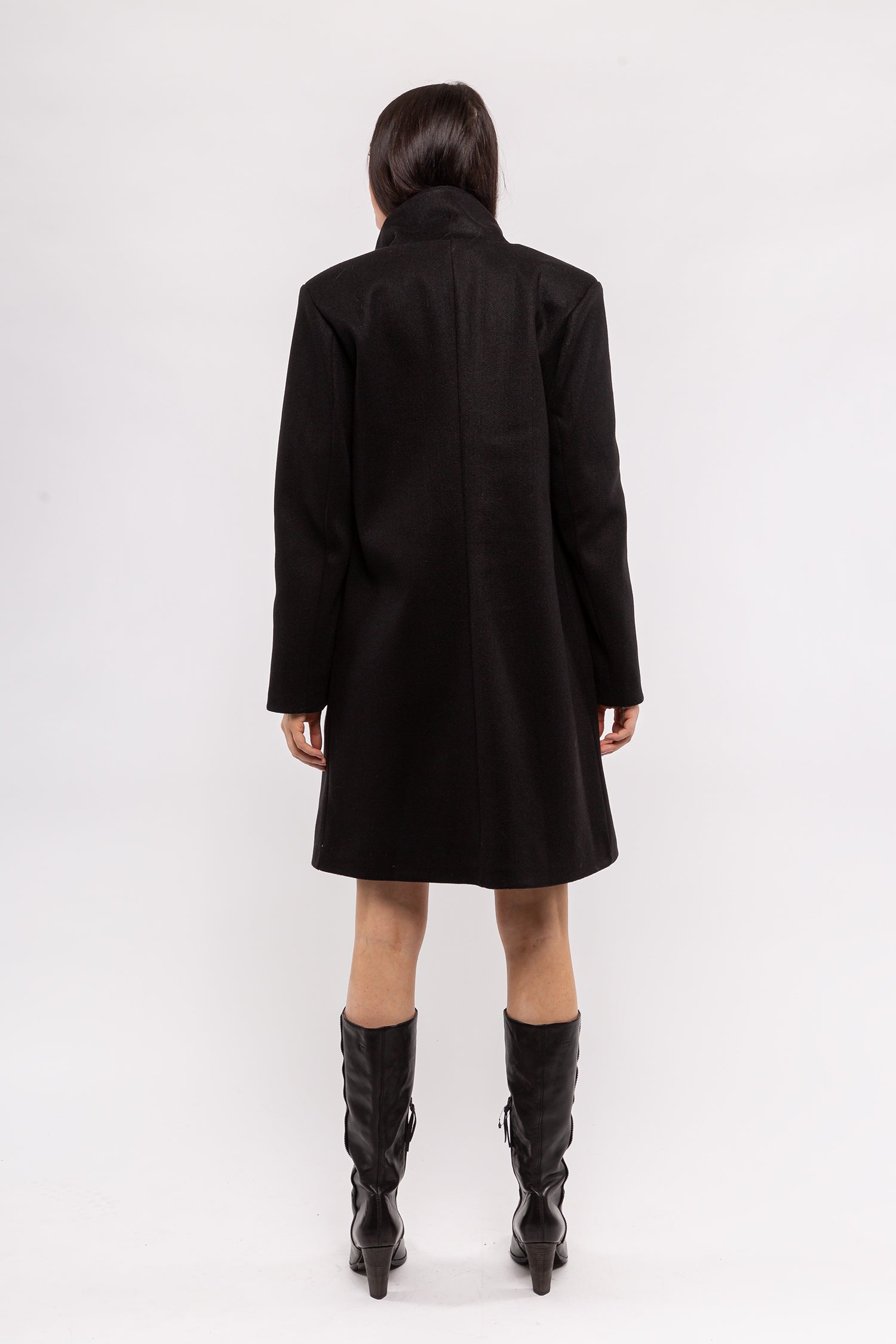 Long Sleeve Coat. Fabric: 100% Polyester. Available in colors: Black, Apple Red.
