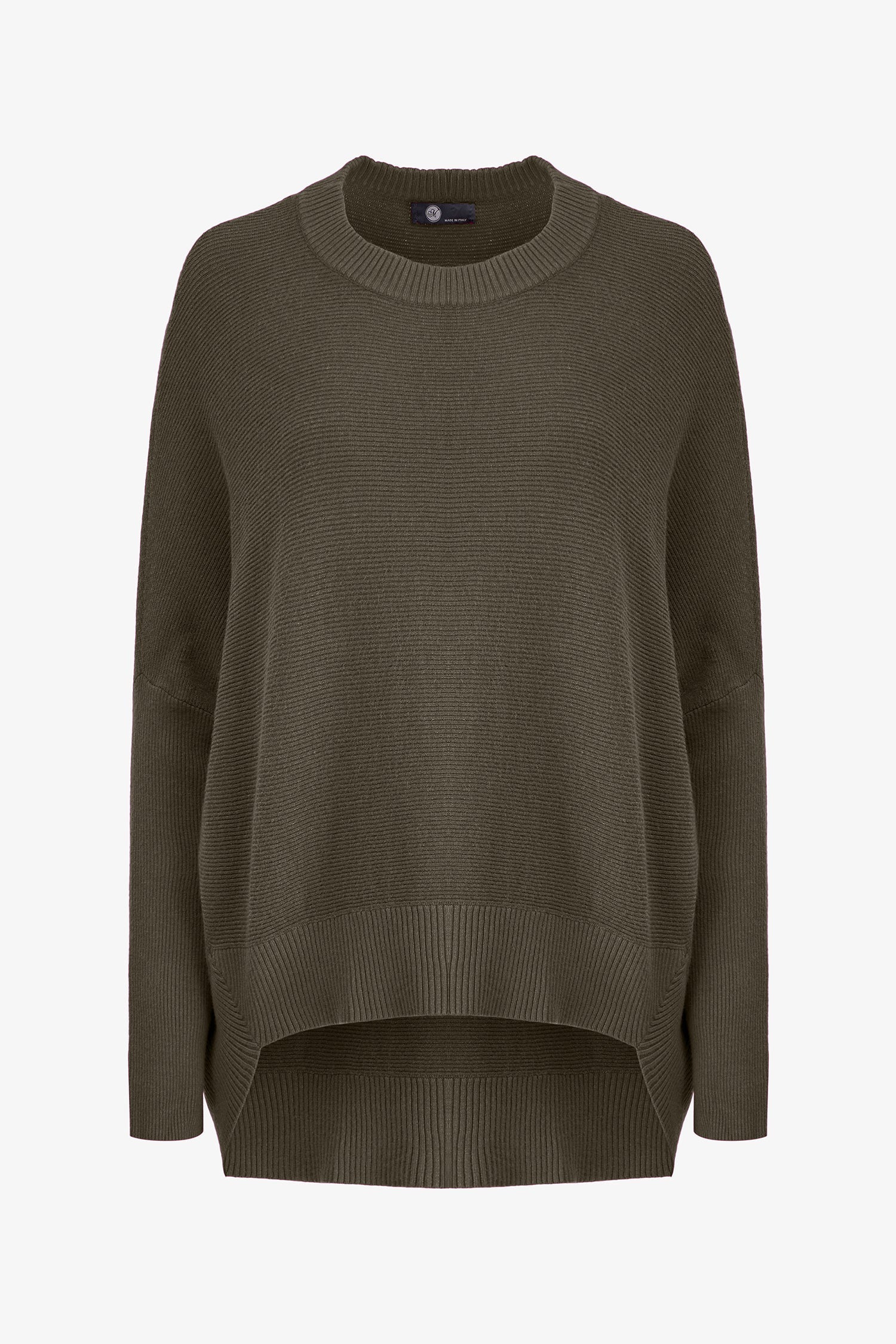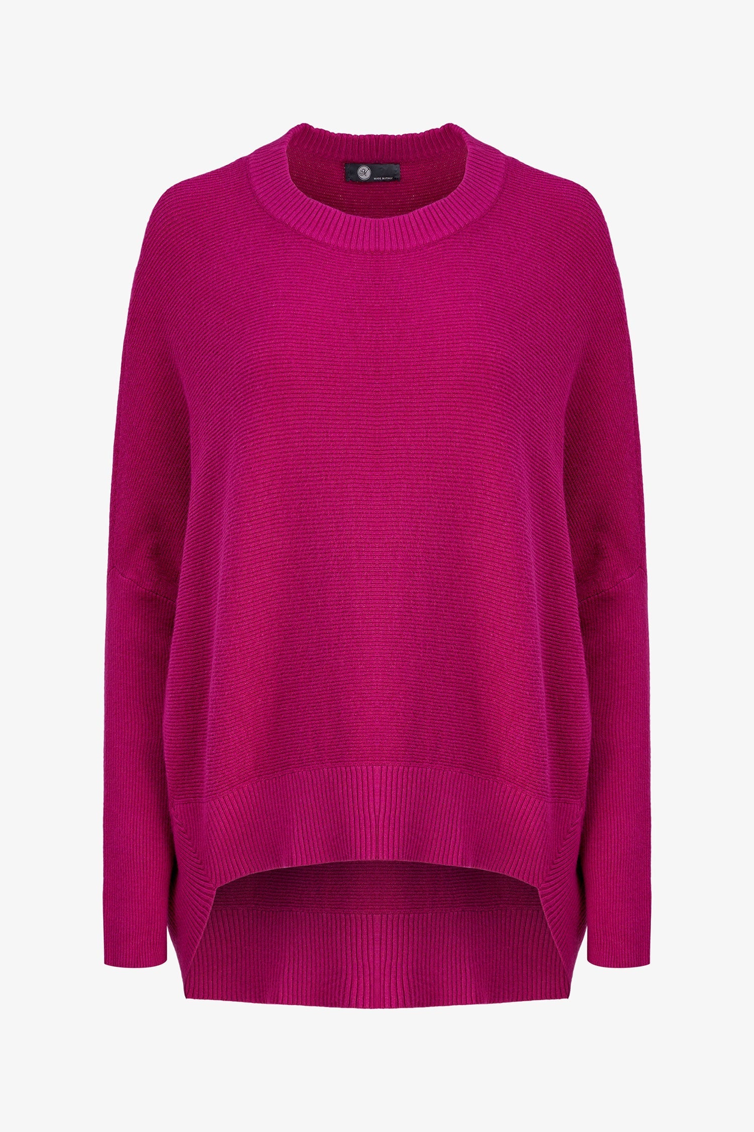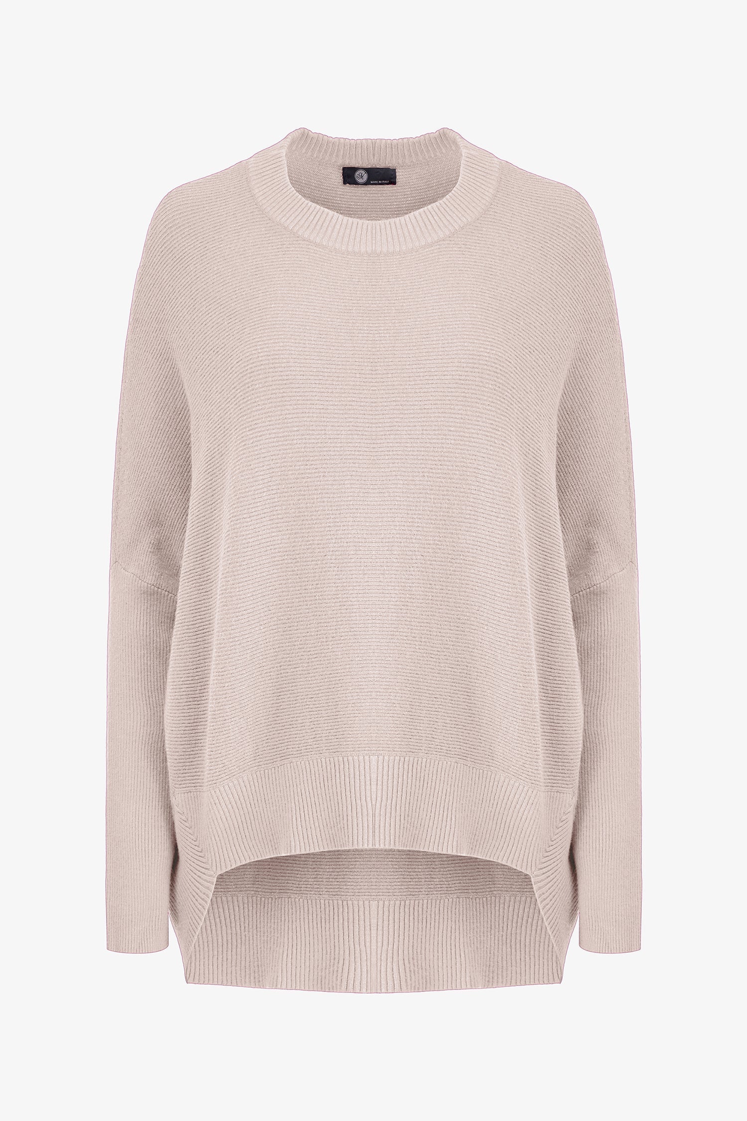 Women's Knit Crew-Neck Sweater, With Long Sleeves, A Dropped Shoulder And A Scooped Hi-Low Hemline. Made of 52% Viscose, 18% Wool, 15% Polyamide, 15% Polyester.