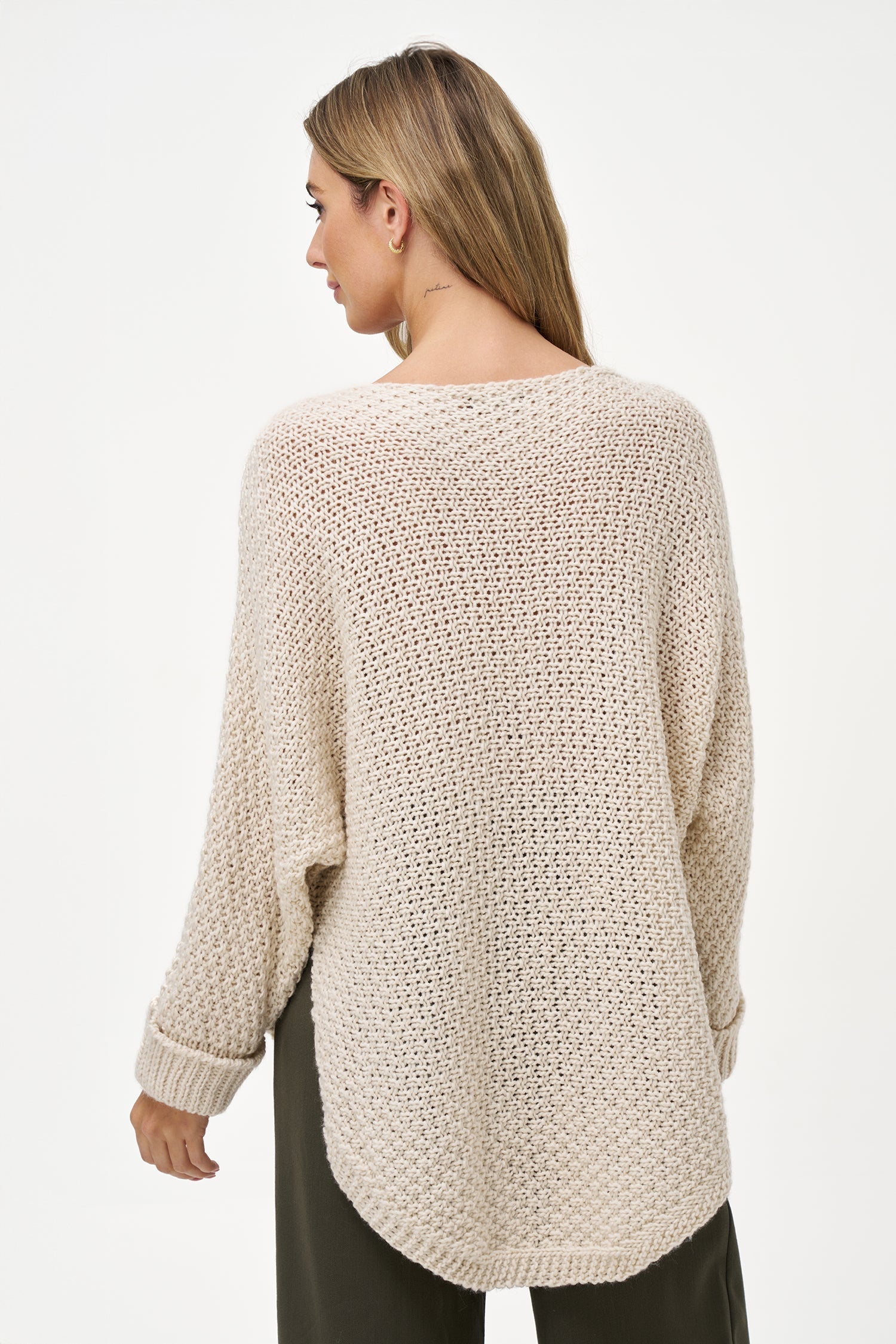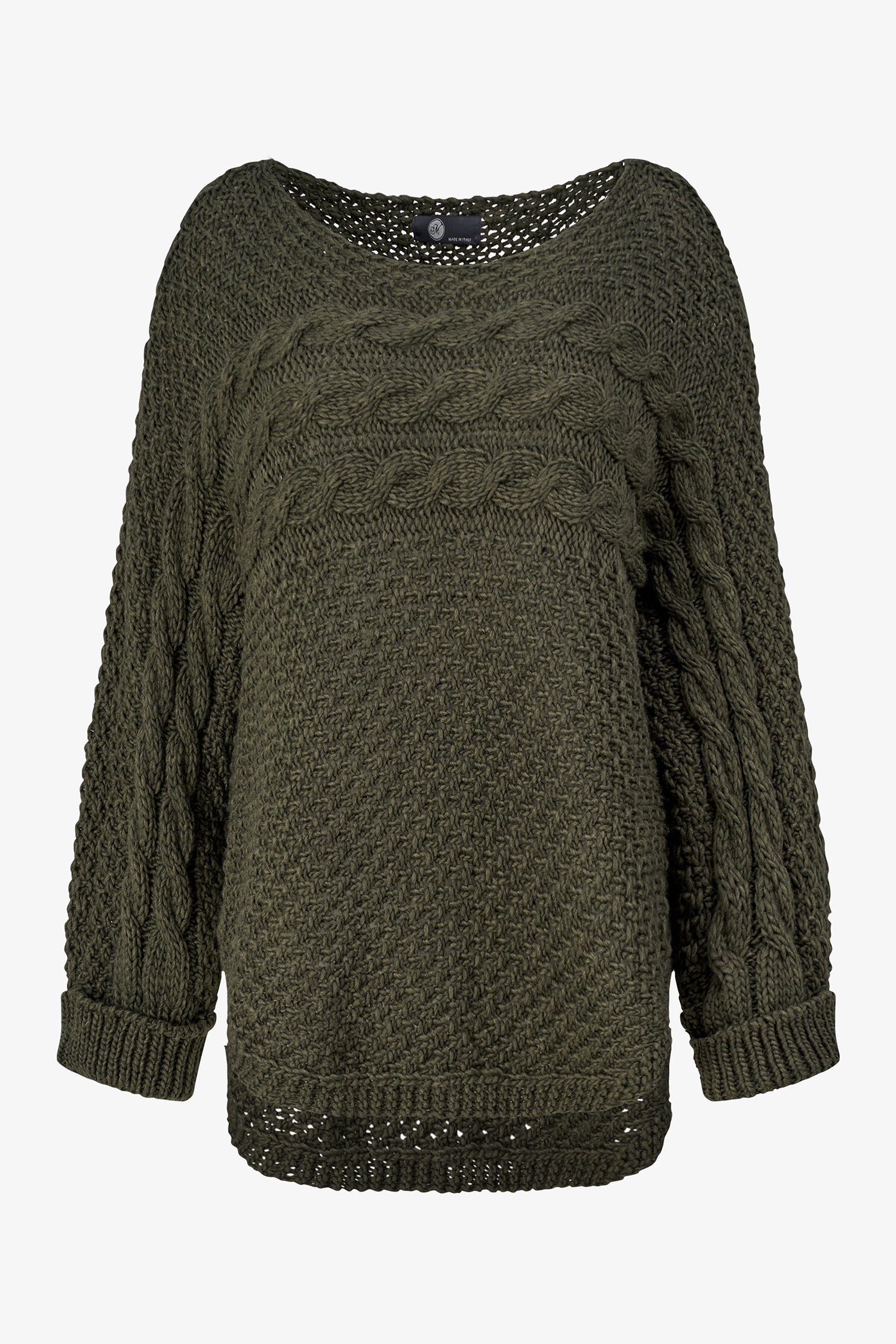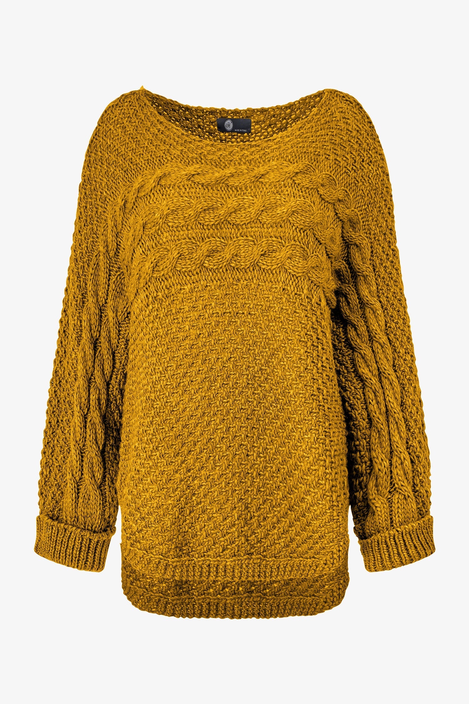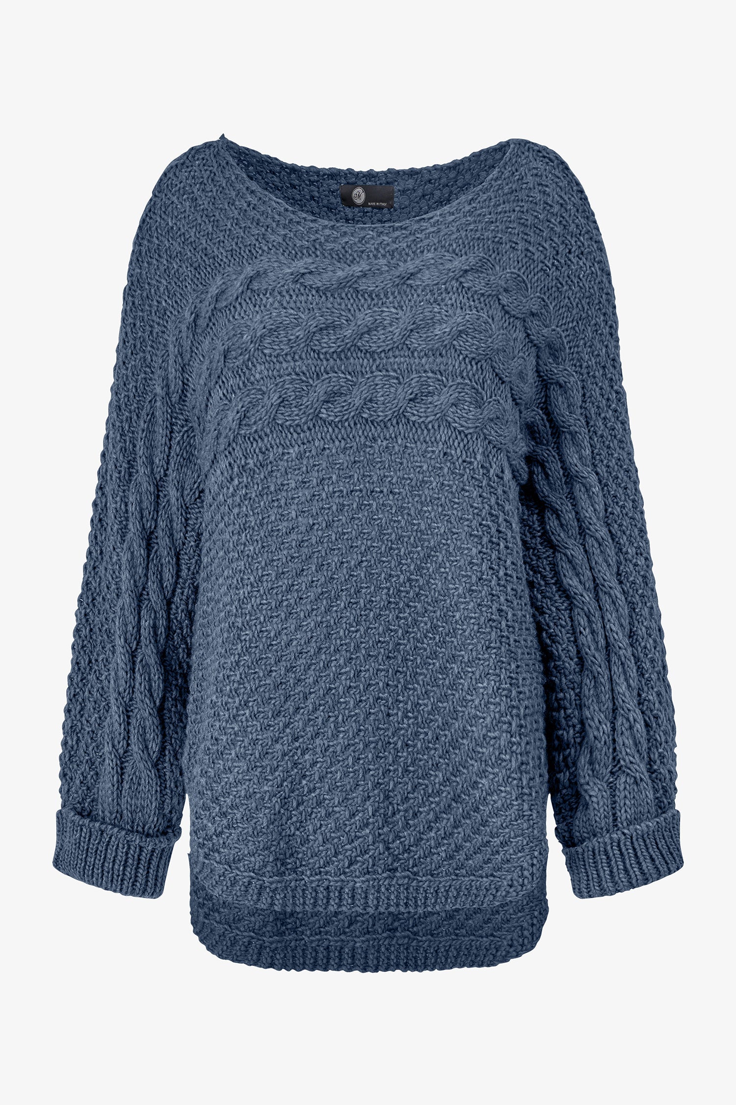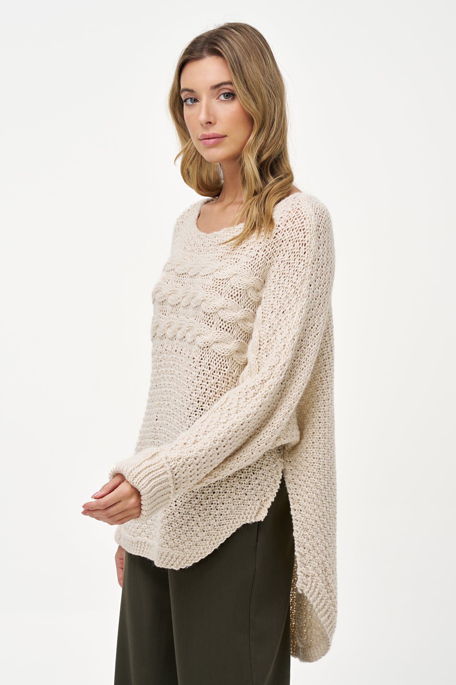 Women's Wide-Neck Cable Knit Sweater, With Long Sleeves And A Hi-Low Hemline. Made of 50% Acrylic, 20% Polyamide, 10% Mohair, 10% Viscose, 10% Wool.