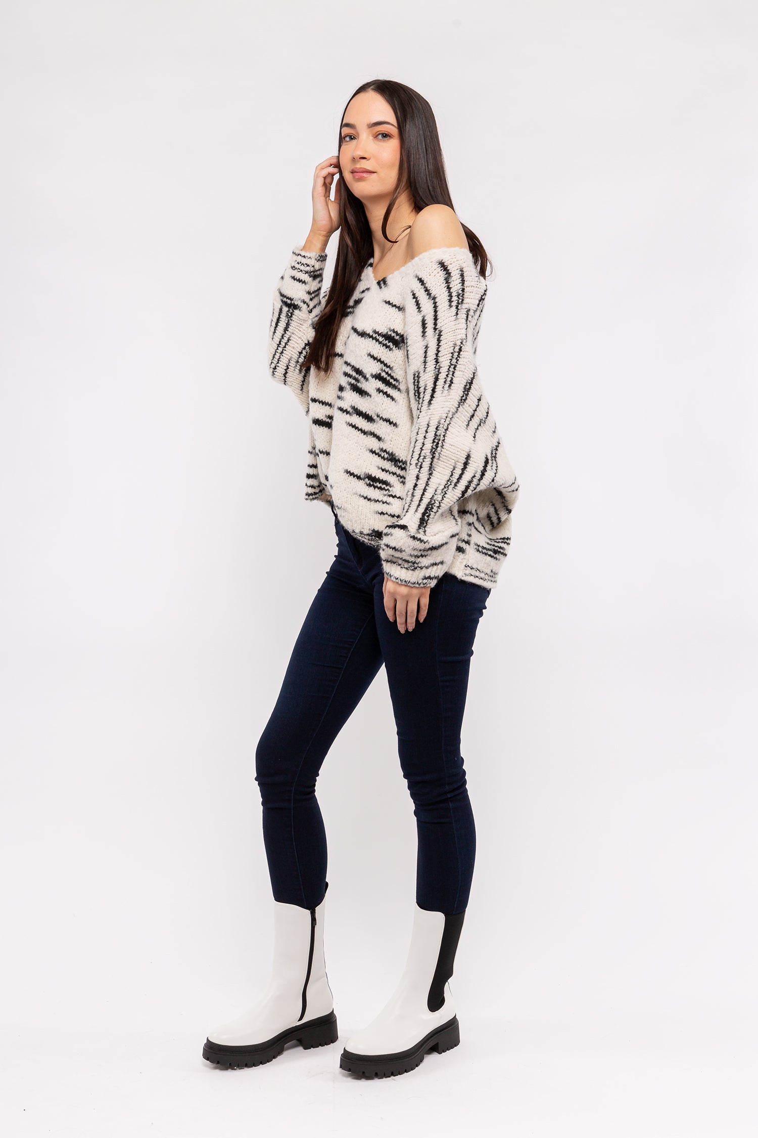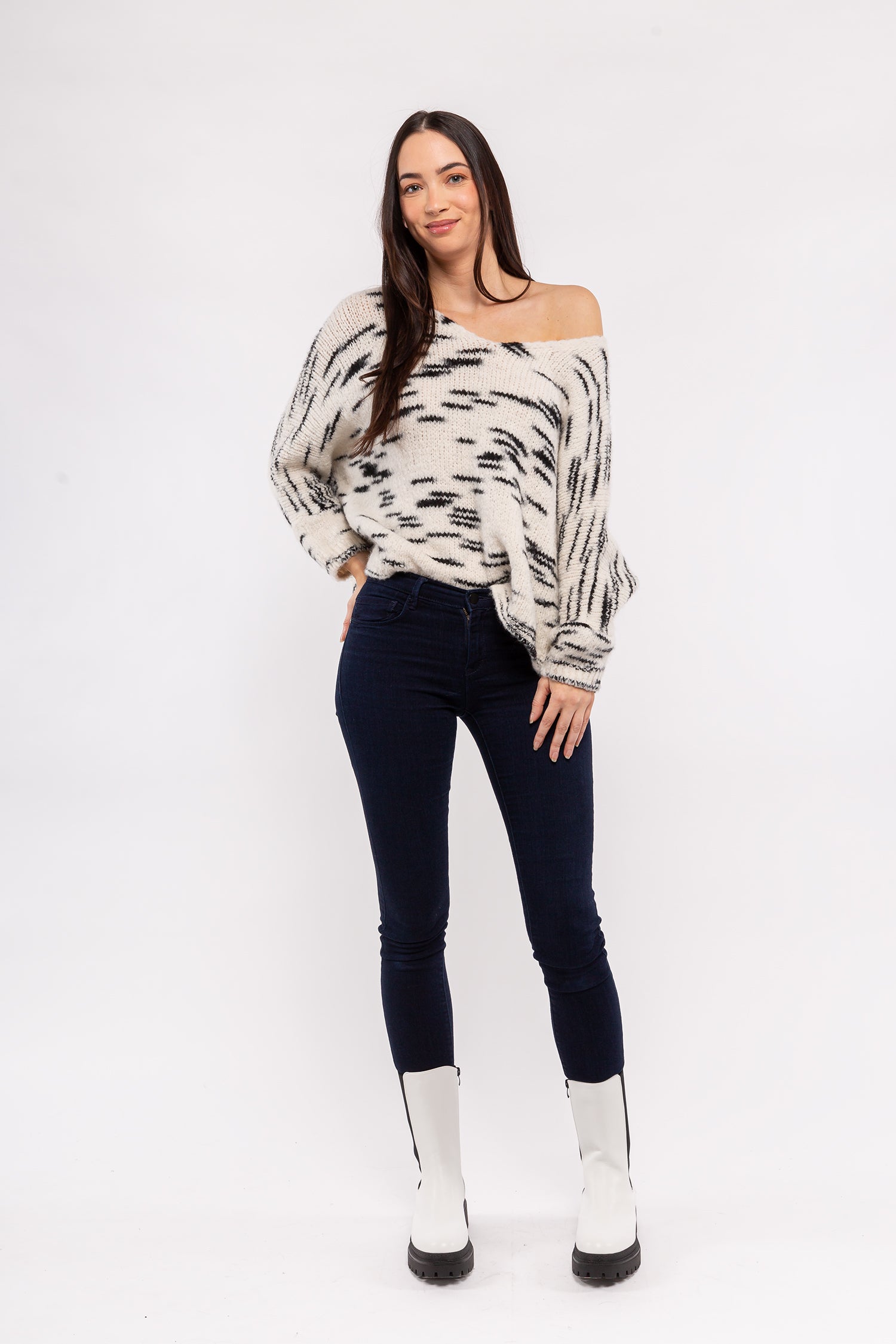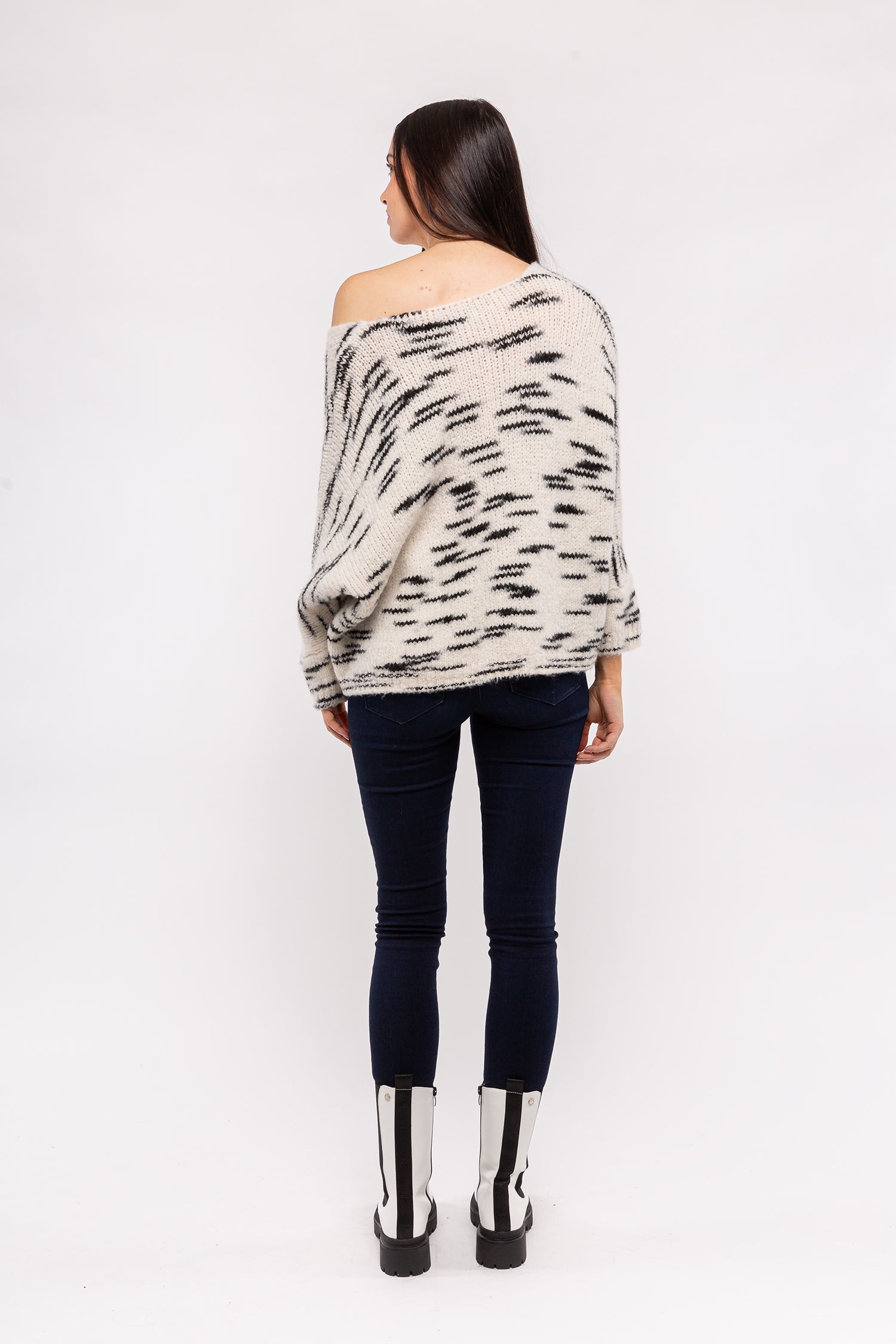 Long Sleeve Sweater. Fabric: 60% Acrylic 26% Wool 12% Polyamide 2% Elastane. Available in colors: Black-Snow.