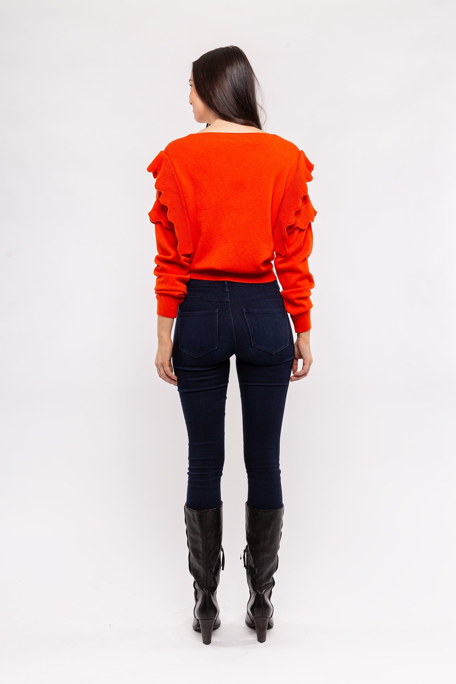 Long Sleeve Sweater. Fabric: 52% Viscose 15% Polyamide 18% Wool 15% Polyester. Available in colors: Black, Fire Orange, Oatmeal, Shocking Pink.