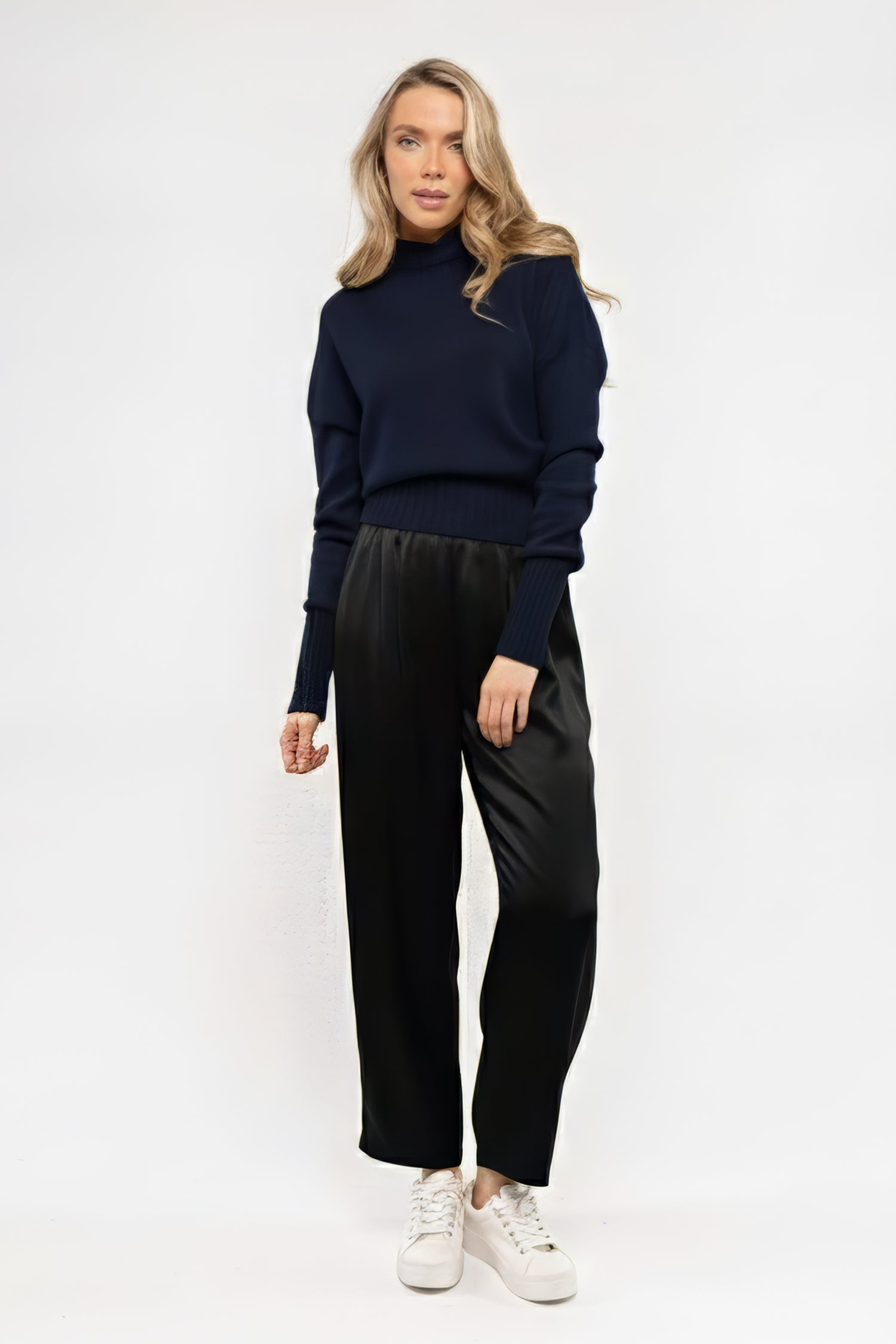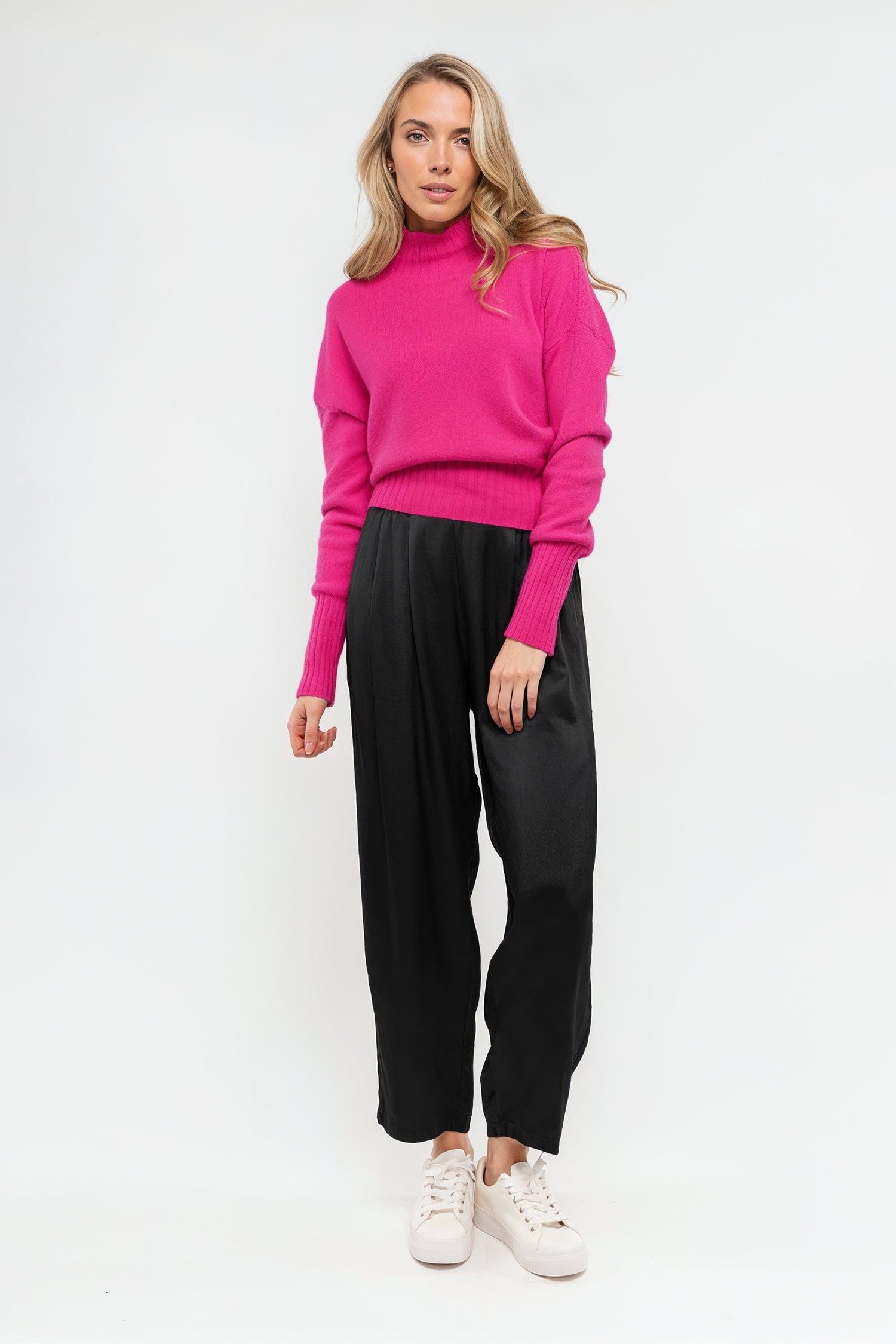 Long Sleeve Sweater. Fabric: 52% Viscose 15% Polyamide 18% Wool 15% Polyester. Available in colors: Black, Pumpkin, Emerald, Brulee, Midnight, Shocking Pink, Apple Red.